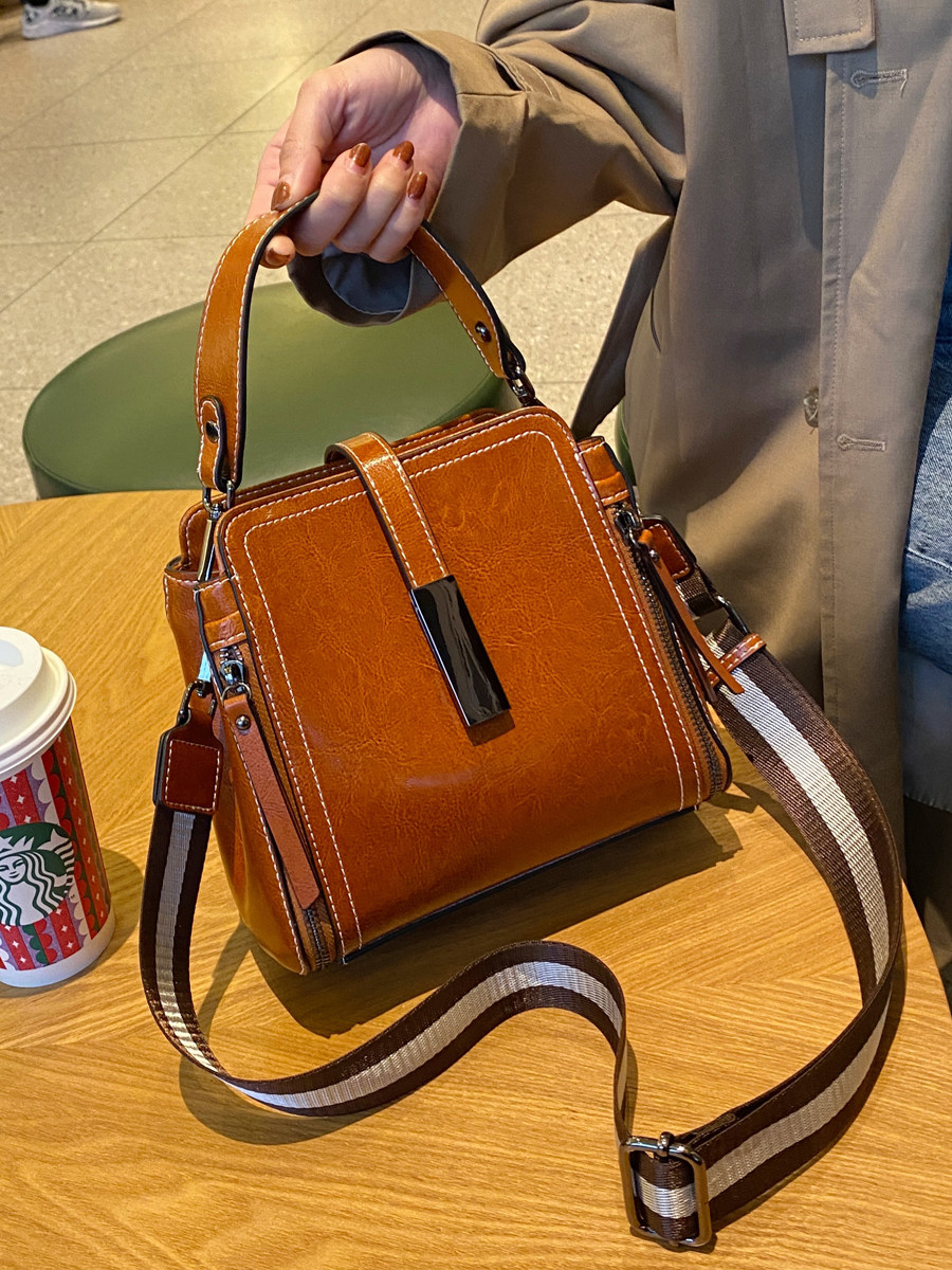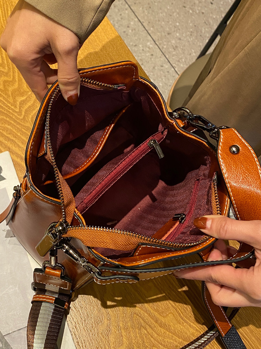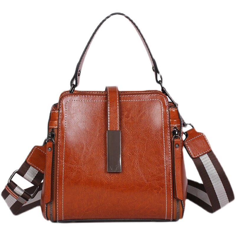 Women's leather handbag versatile fashion Messenger shoulder bag send mother lady commuting simple retro small backpack