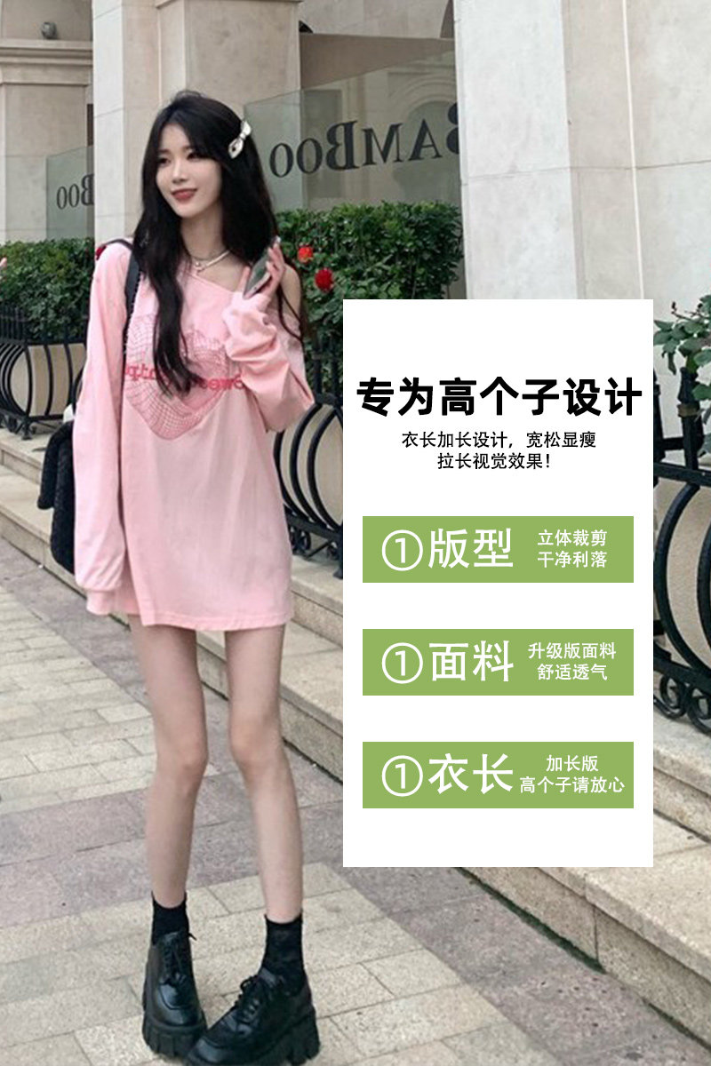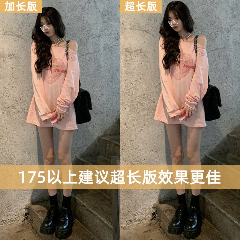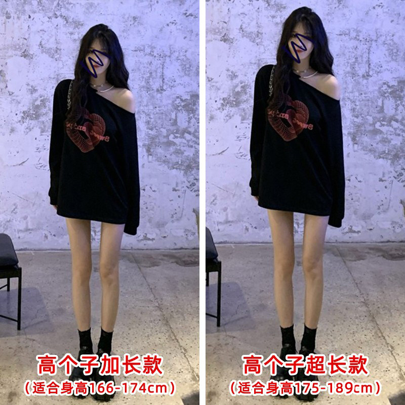 Tall long version T-shirt women cover ass bottoms missing printed long-sleeved tops 175 fashionable and sweet 170