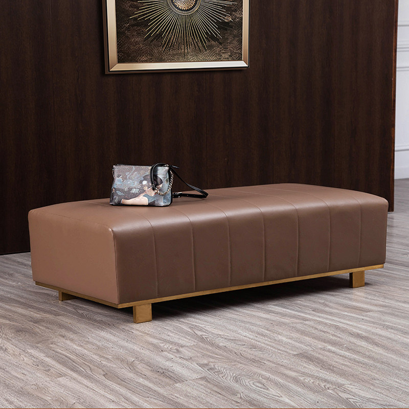Postmodern genuine leather bed tail stool bedroom living room cloakroom changing shoes stool sofa light lavish stainless steel home rest stool