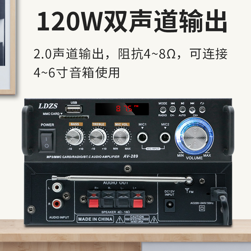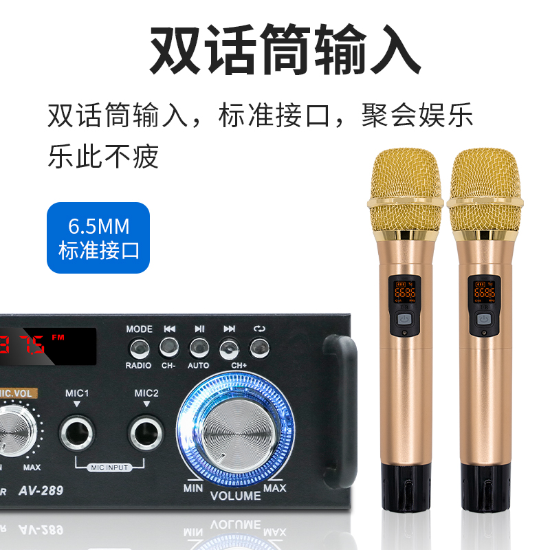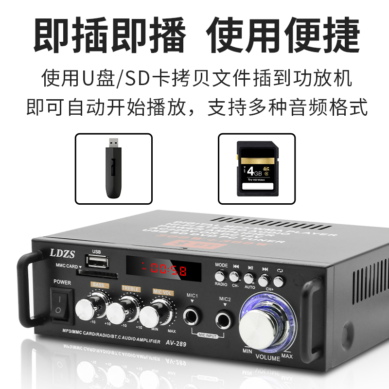 Home professional small bluetooth amplifier high-power karaoke radio plug U disk card 220V12V dual channel