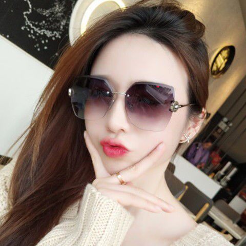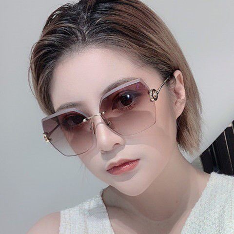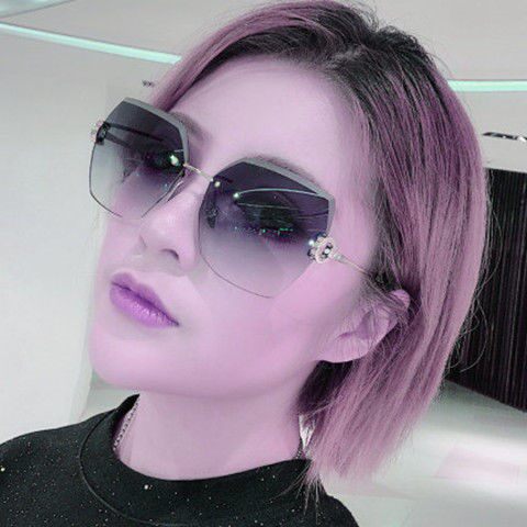2022 new ins sunglasses round face rimless cut edge sunglasses female senior sense of face small anti-UV glasses