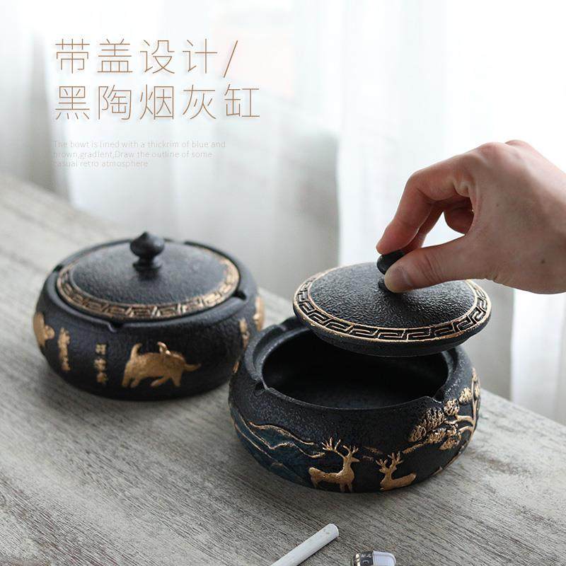 Creative Ashtray Atmospheric Cigarette Ash Tray With Lid Creative Home Office Personality Trend Living Room Chinese Anti-Fly Ash