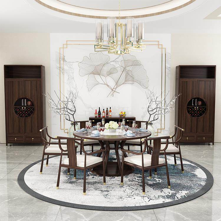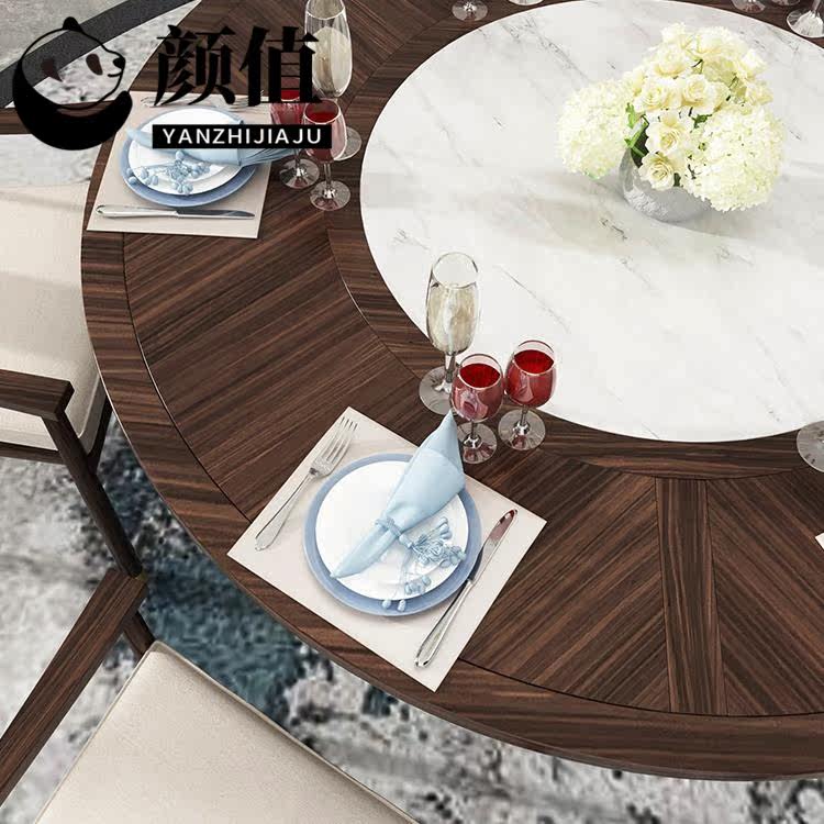 New Chinese minimalist dining table round table modern light luxury marble dining table solid wood round household dining table and chair combination