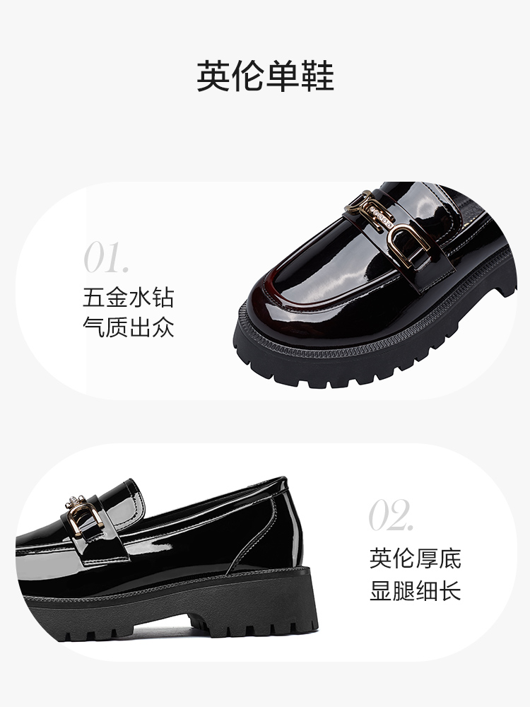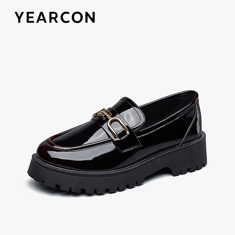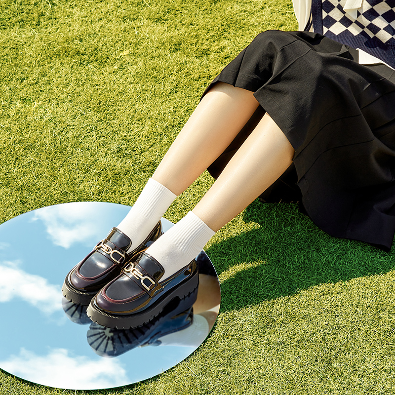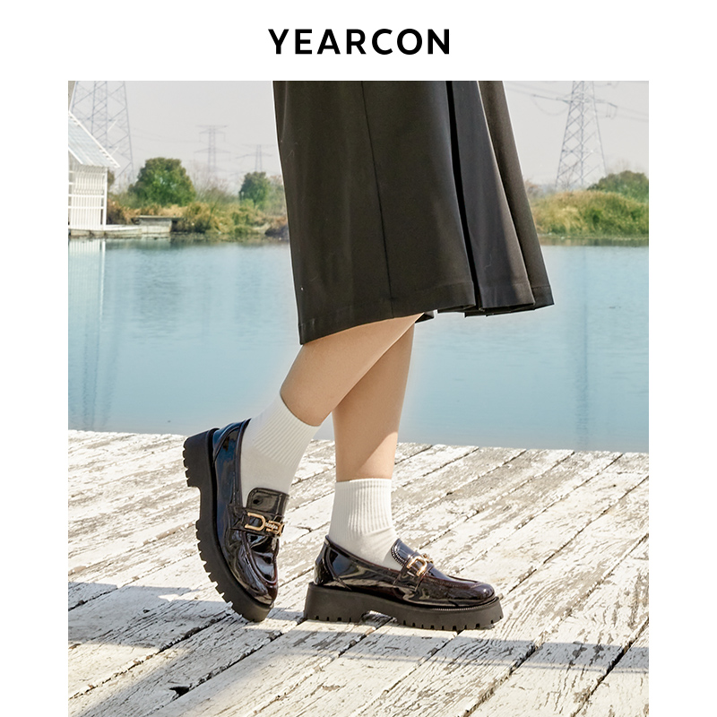 Yercon 2022 New College Wind Lefu Shoes Women's Thick Bottom One Foot Pedal Infini Leather Shoes Black JK Single Shoe Woman