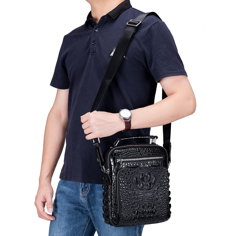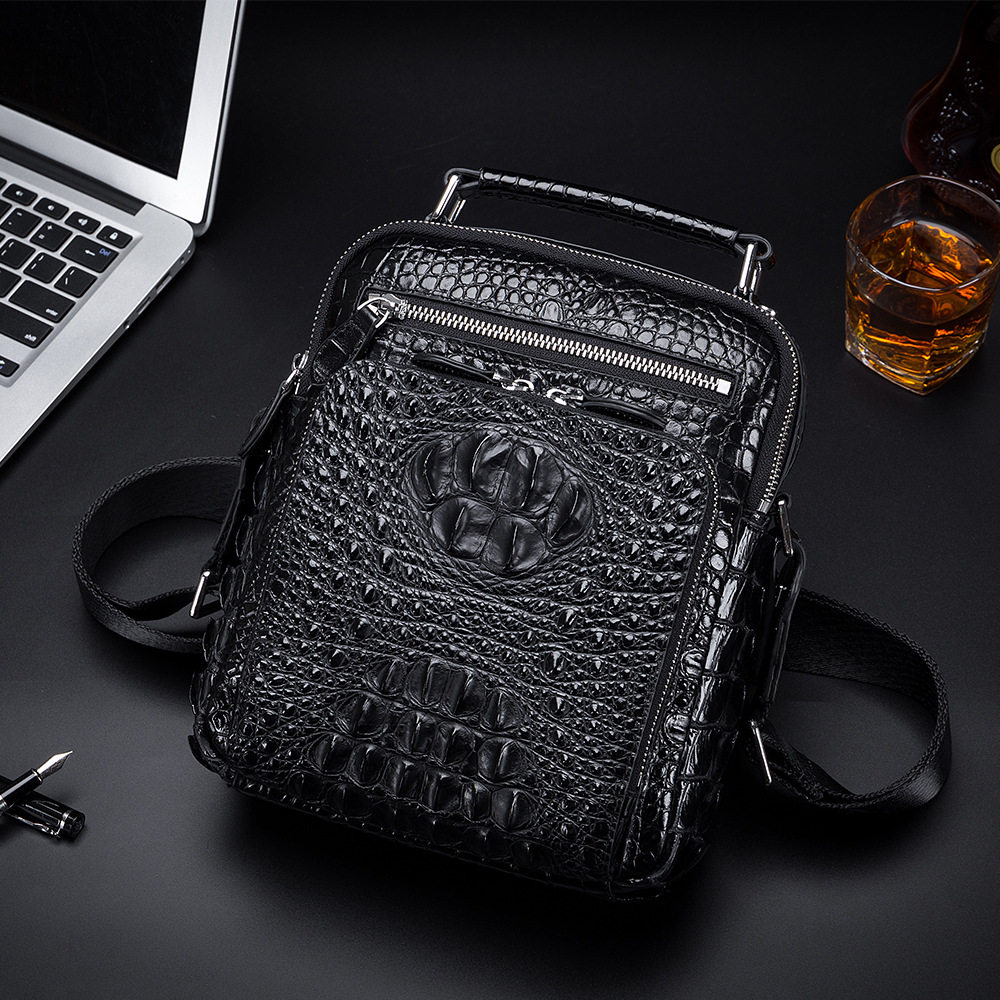 2022 new men's genuine leather single shoulder bag business on business trip crocodile tattoo men's bag vertical and satchel satchel bag
