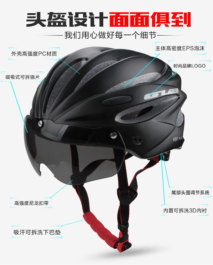 GUB K80 PLUS bicycle helmet with windglass integrated cycling windglass magnetic suction windlens helmet