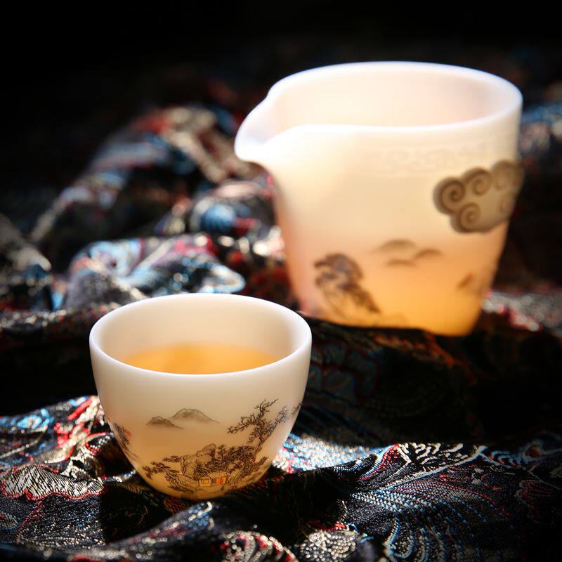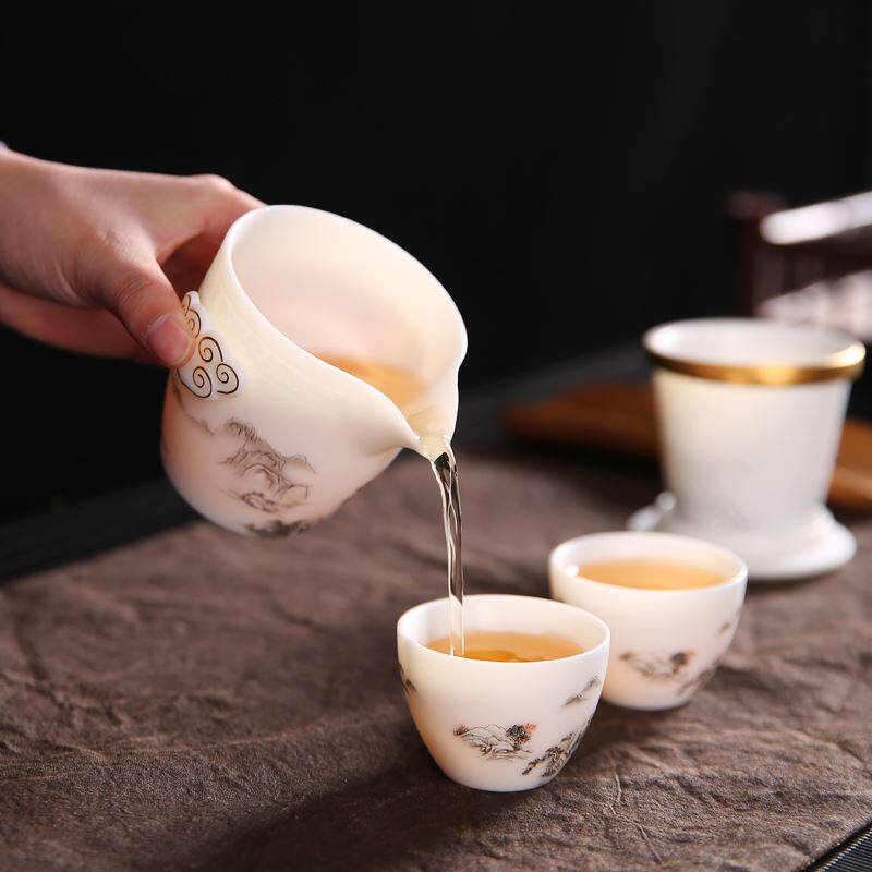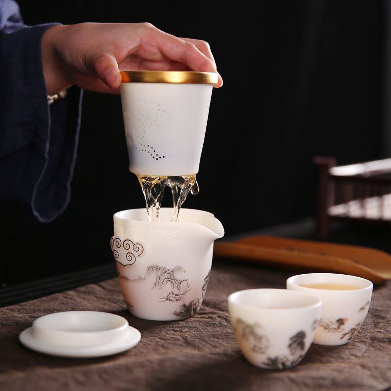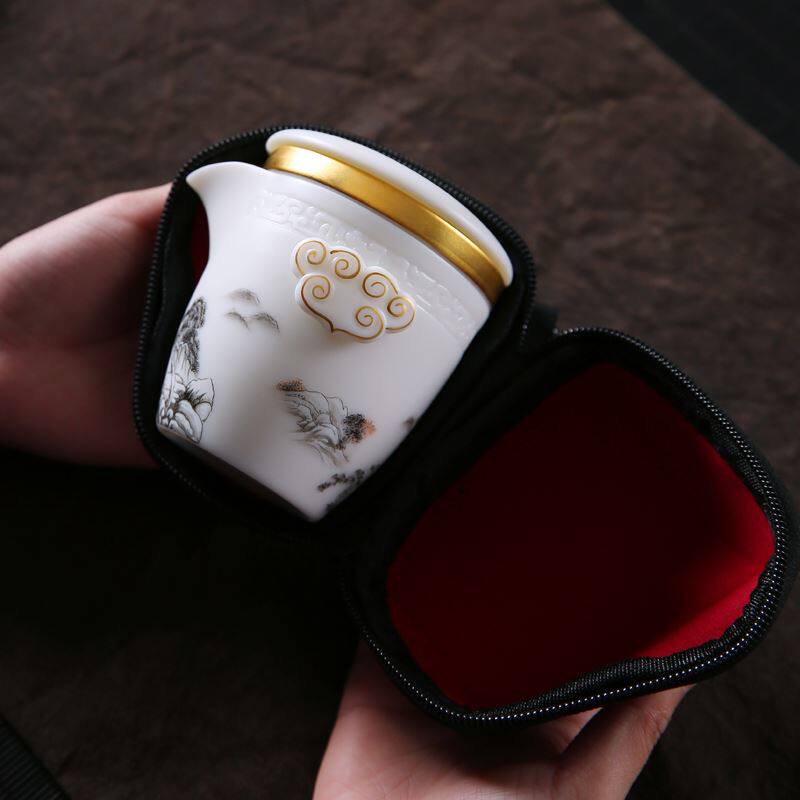 Tangshequan Shiyaju Sheep Fat Jade Porcelain White Porcelain Quick Cup One Pot Two Cups Portable Kung Fu Travel Tea Set