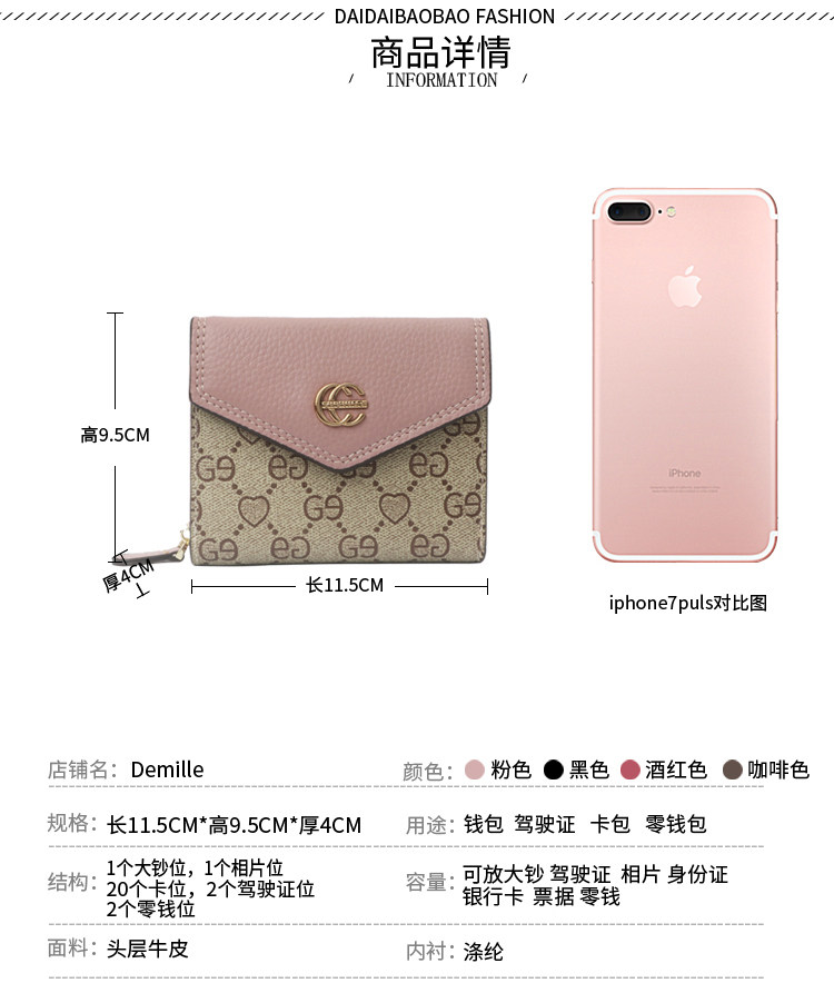 2022 new ladies' wallet shorts genuine leather delicately upscale small card bag women style fashion money clip folded leather wallet