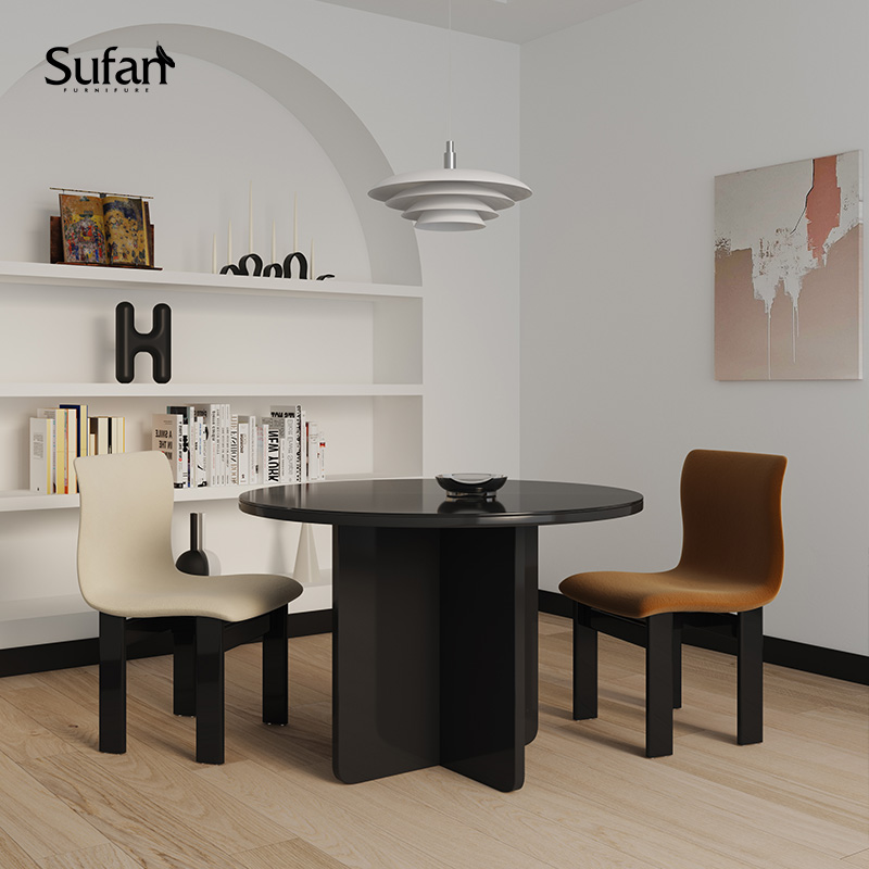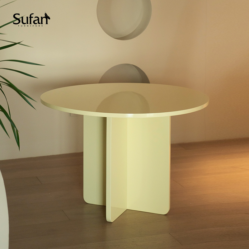 Shu Fan new moon shadow round dining table Nordic light luxury retro workbench negotiation table wooden paint glass surface