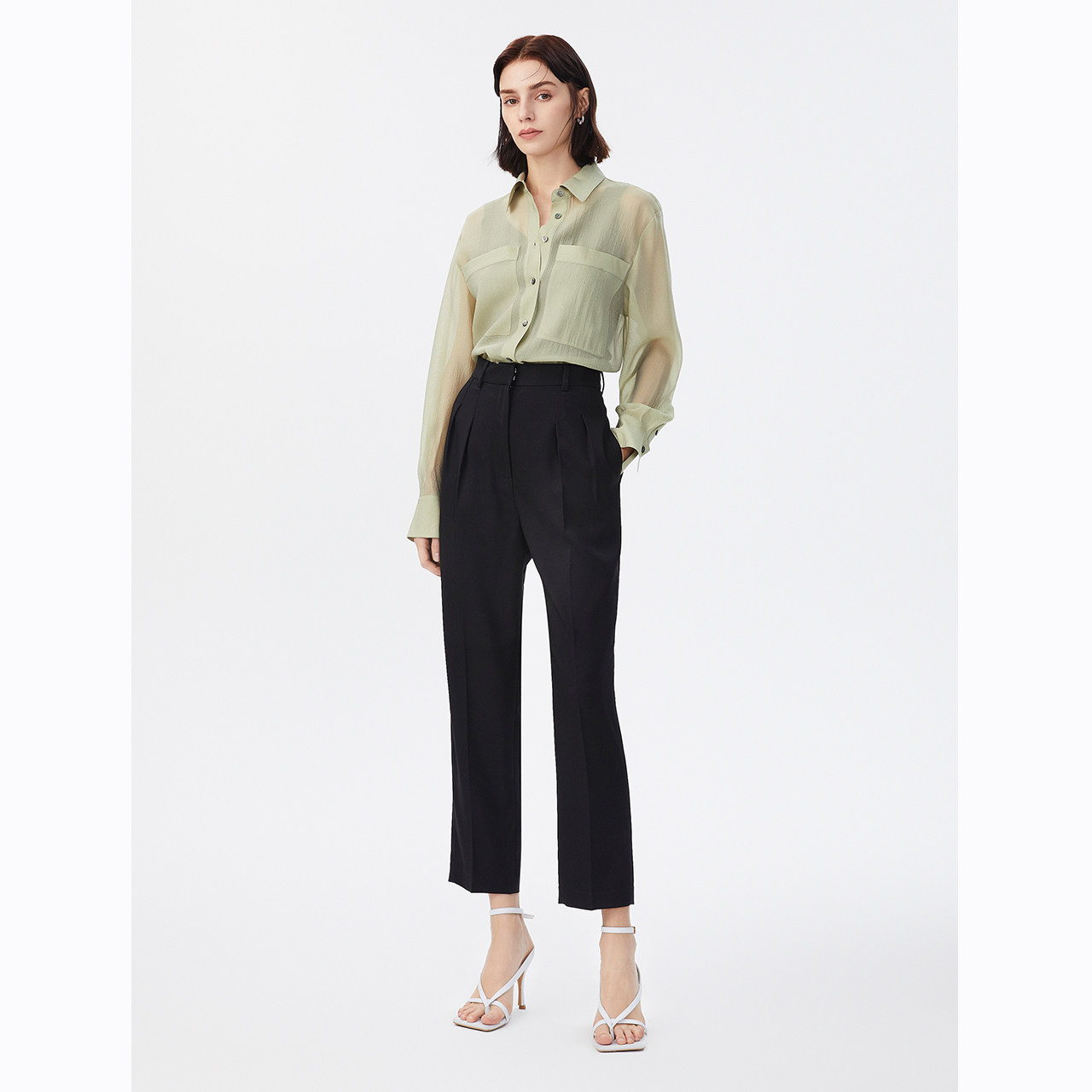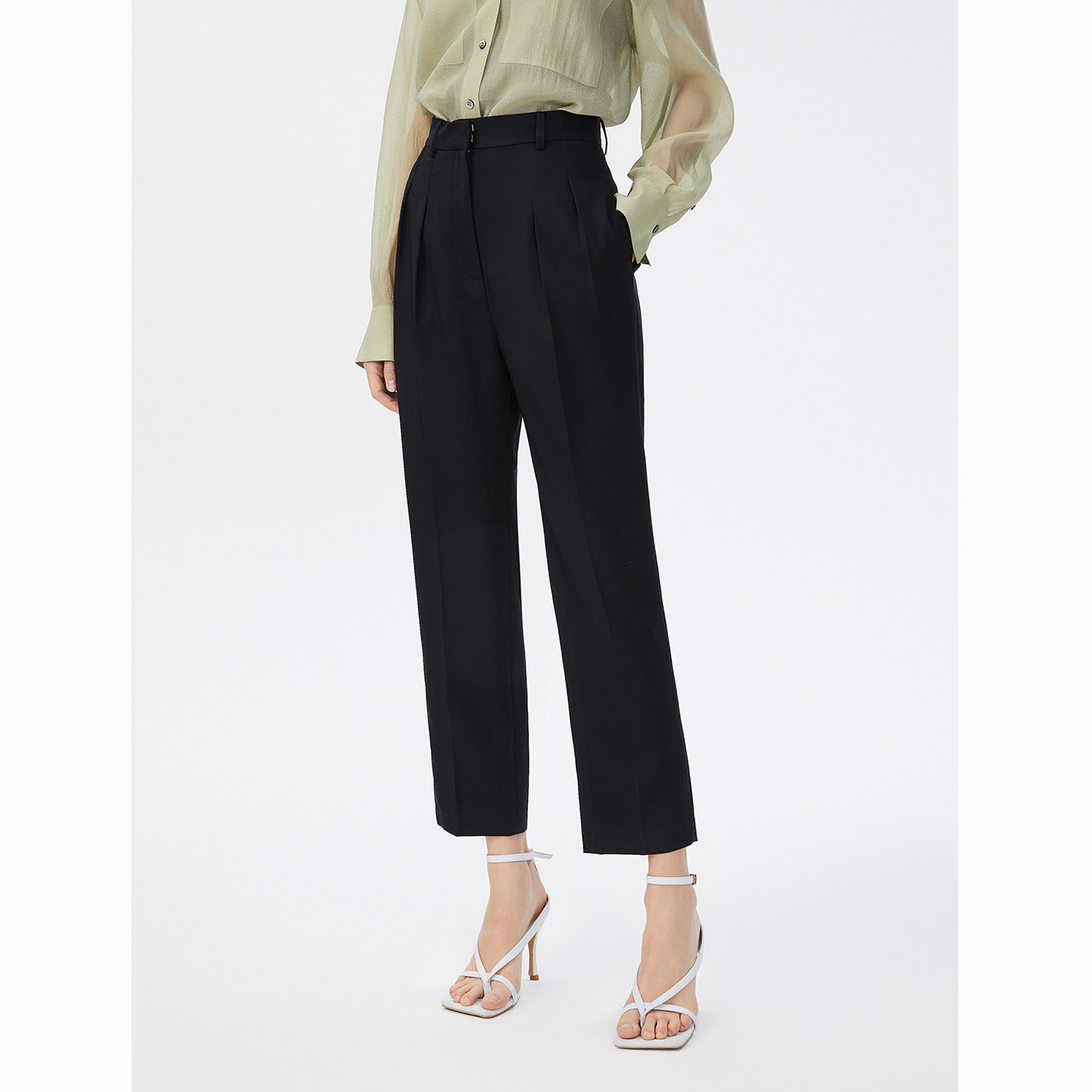 Lanzy style high waist straight cylinder 100 lap black temperament professional Western-style pants woman 2022 Summer new long pants