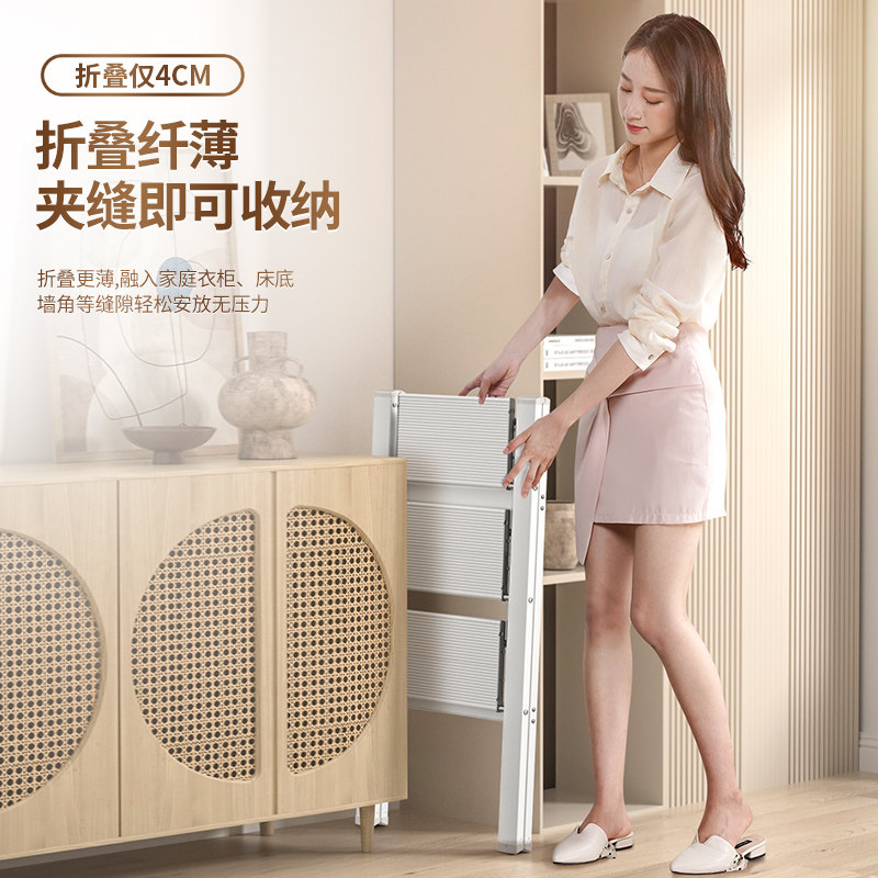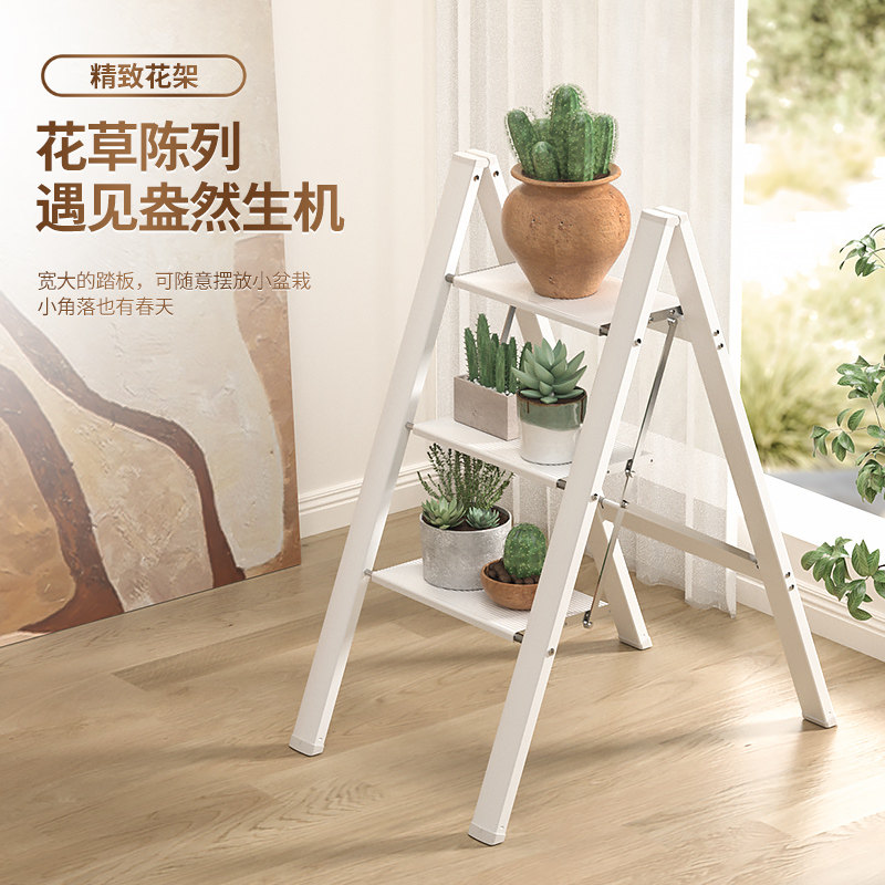 Home Ladder Thickened Aluminum Alloy Herringbone Ladder Flower Shelf Ladder Bench Indoor Multifunction Folding Ladder Three-step Portable Climbing Ladder