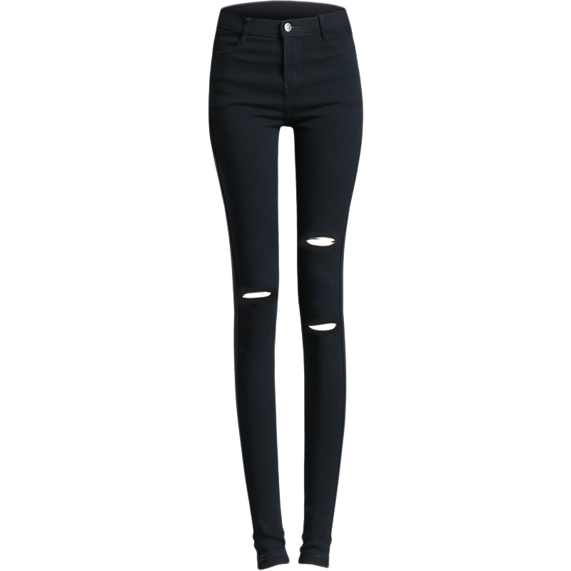 Broken Hole Inner lap pants woman outside wearing 2022 Spring and autumn section High waist display slim summer black small feet black pants pencil pants