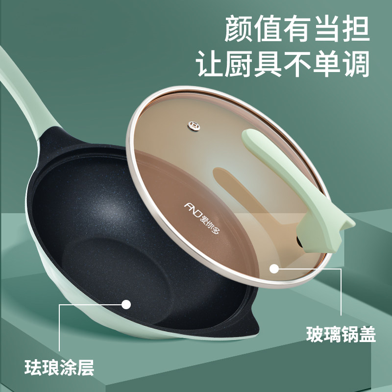 Hongyun 28 frying pan shallow green 1 Hongyun 30 fried pan shallow green 1