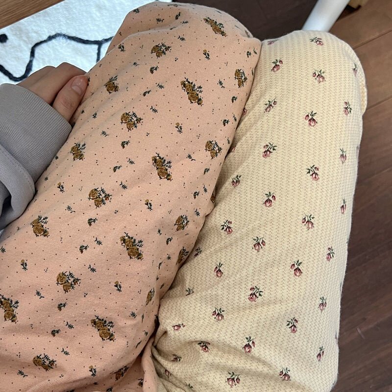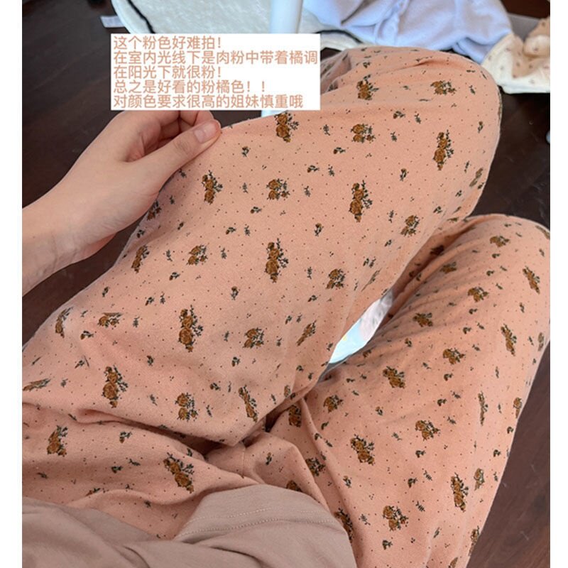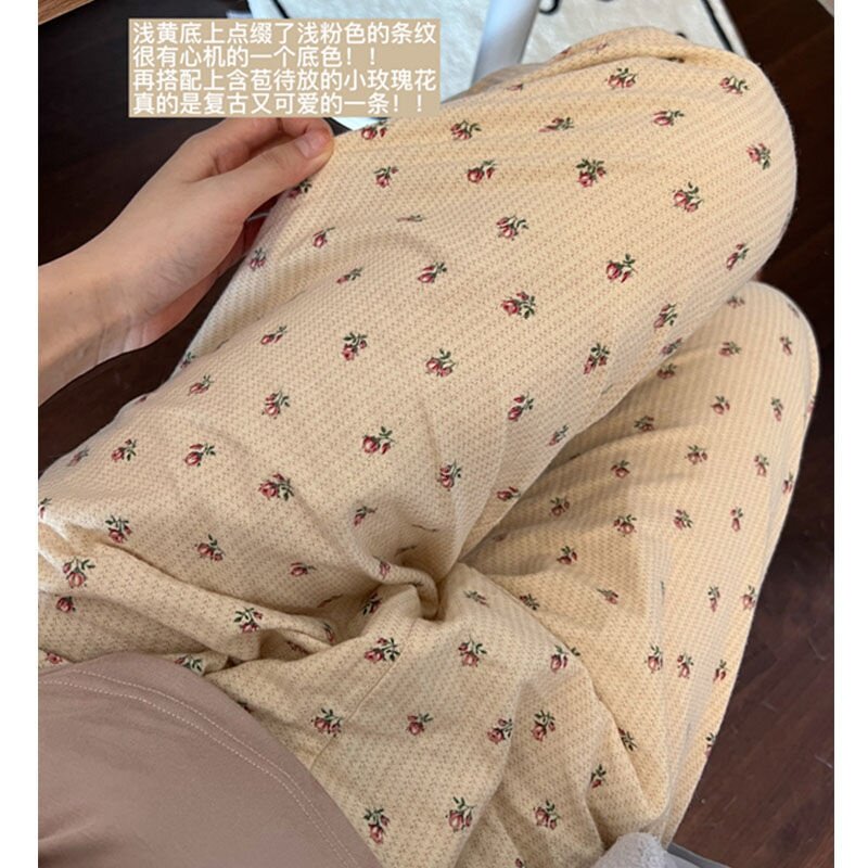 New Korea Ins Spring Summer Autumn Field Garden Wind Cute Broken Flowers Casual Home Pants Tightness Waist Loose Sleeping Pants Women
