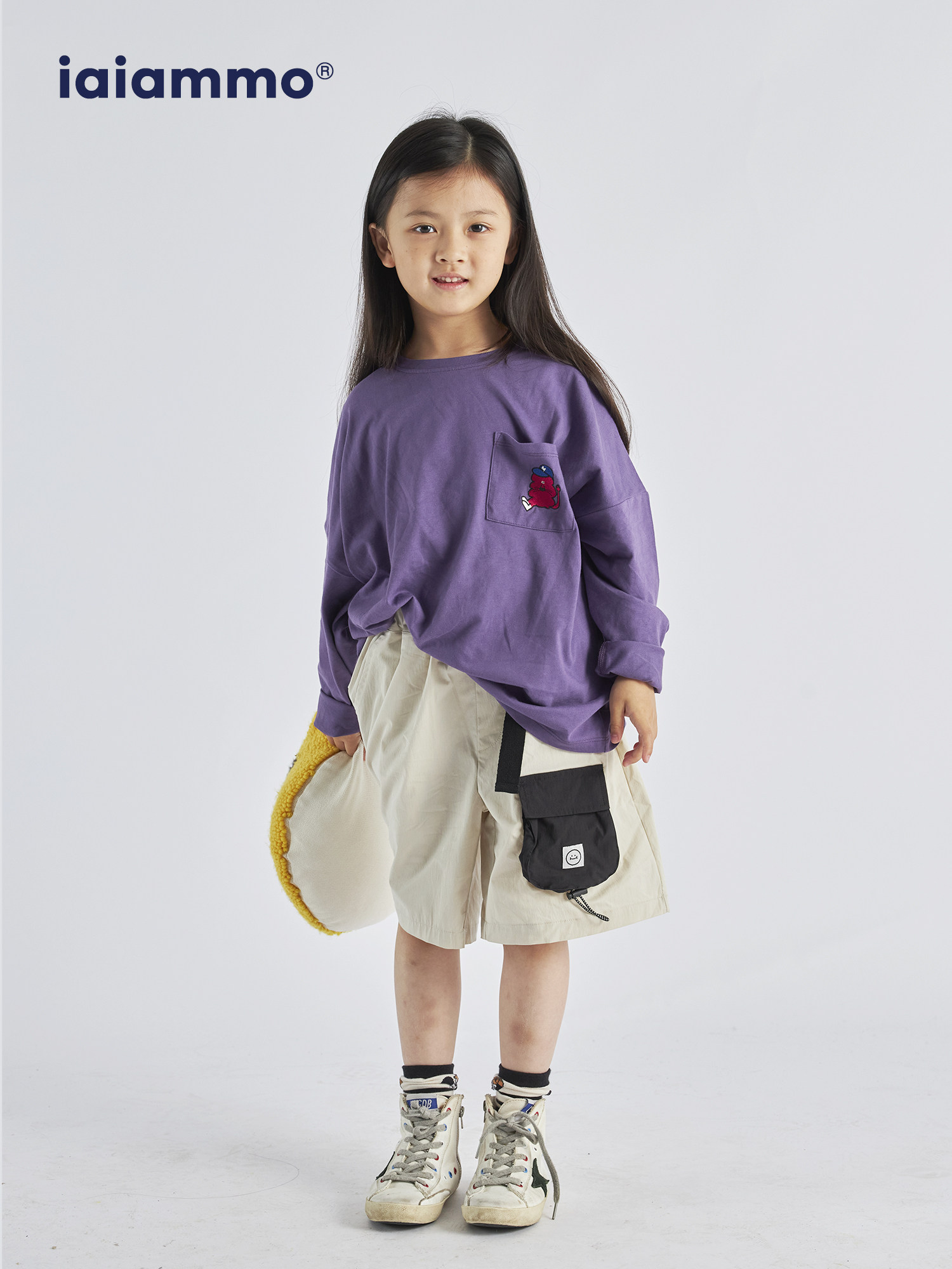 iaiammo Mimi Studio 22 Spring and summer original design loose pocket round collar casual T - shirt long sleeves