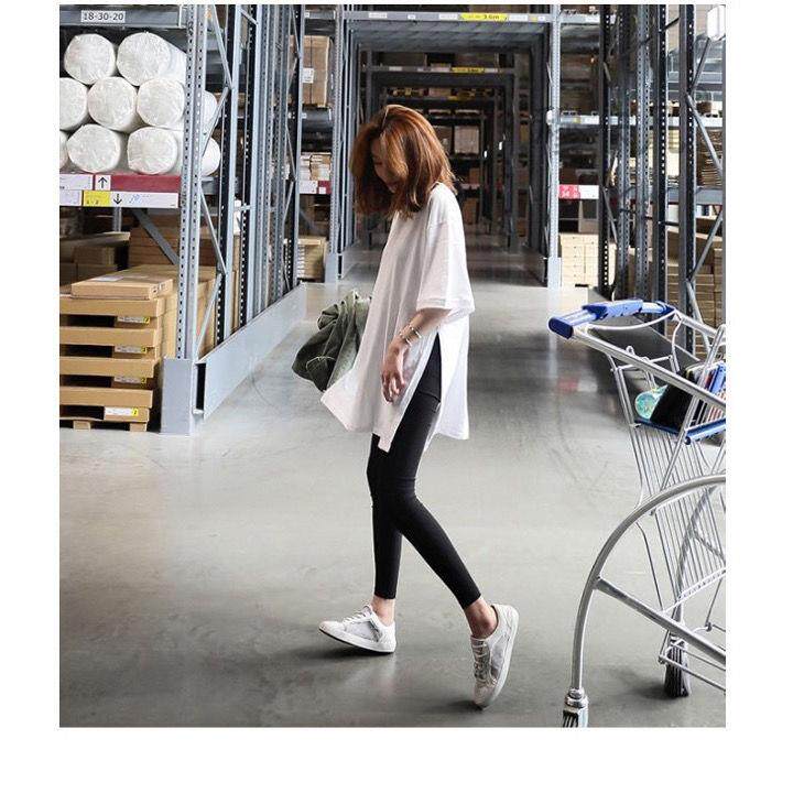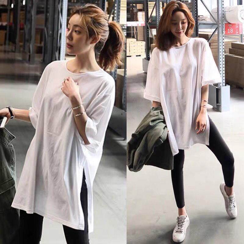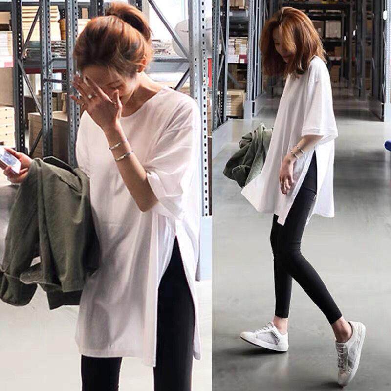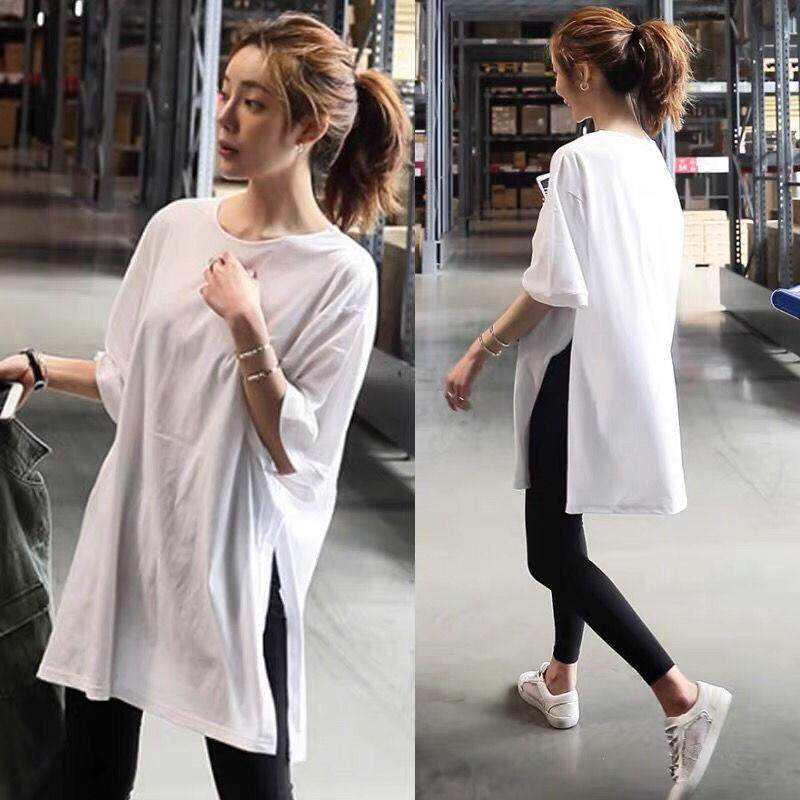 Lower Coat Missing Long Version Short Sleeve T-shirt Woman Loose Cover Butt Blouse White T Open Fork Dress Pure Cotton 2022 New