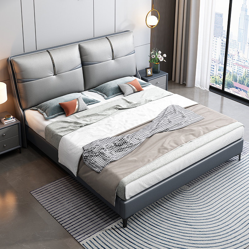 Italian Style Light Luxury Real Leather Bed Modern Simplicity About 1 8m Twin Beds Small Family of main sleeper Wedding Bed Solid Wood Tech Cloth Large Bed