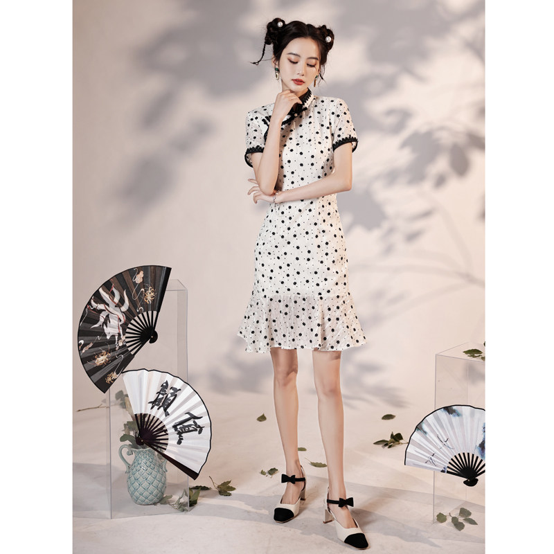 Small cheongsam summer 2022 new temperament fishtail slim fit and thin young girl dress short