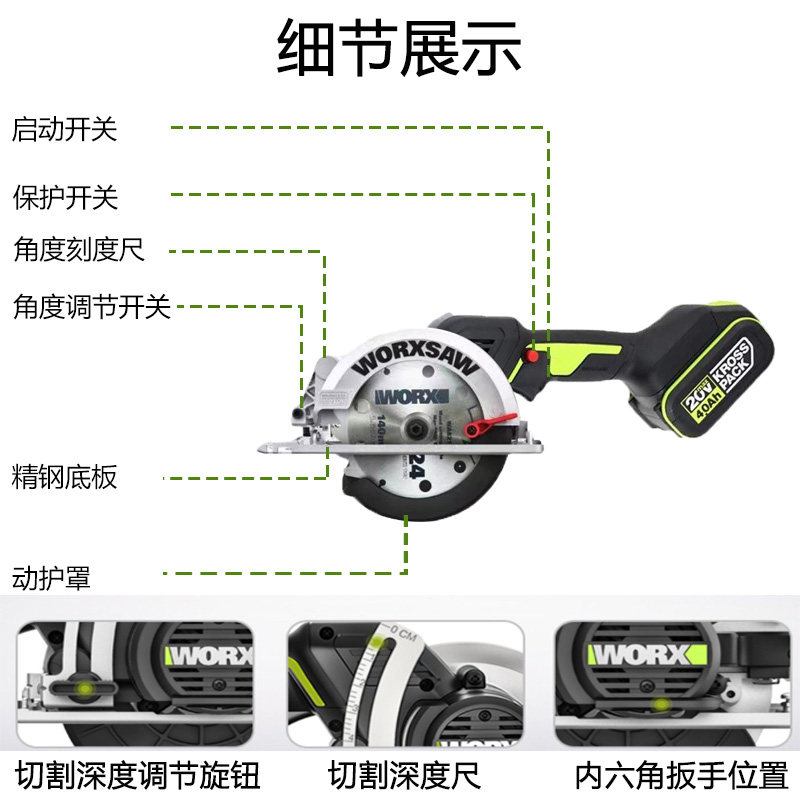Wicks WU535 electric circular saw industrial grade multi-functional woodworking lithium electric portable saw cutting machine high-power tool
