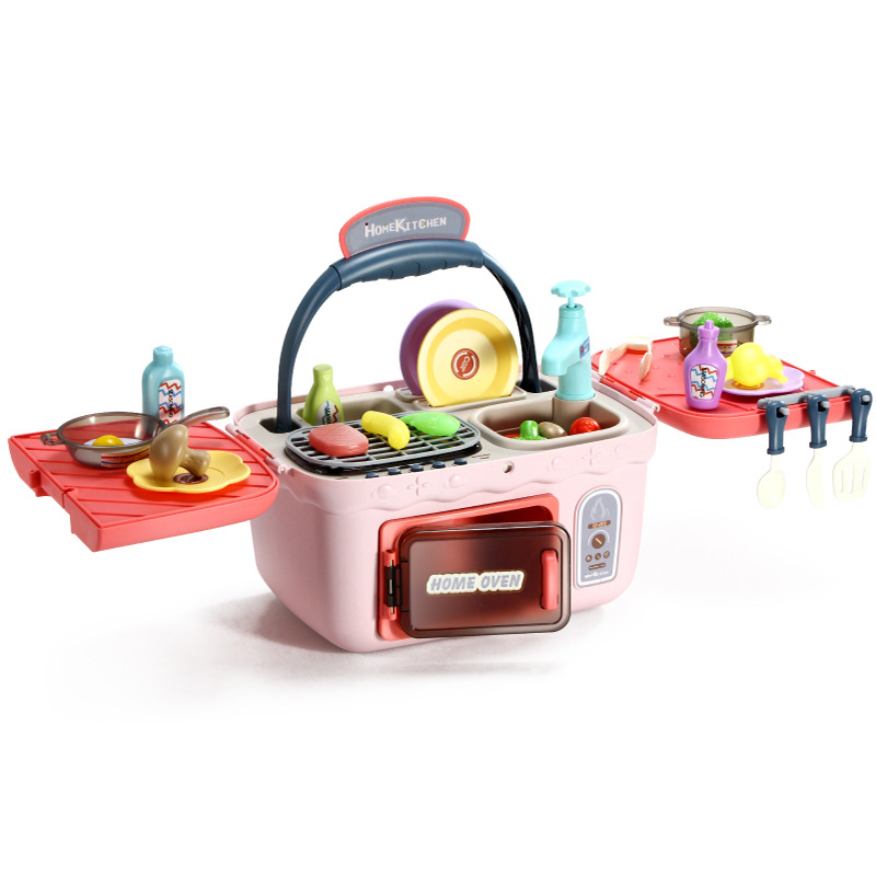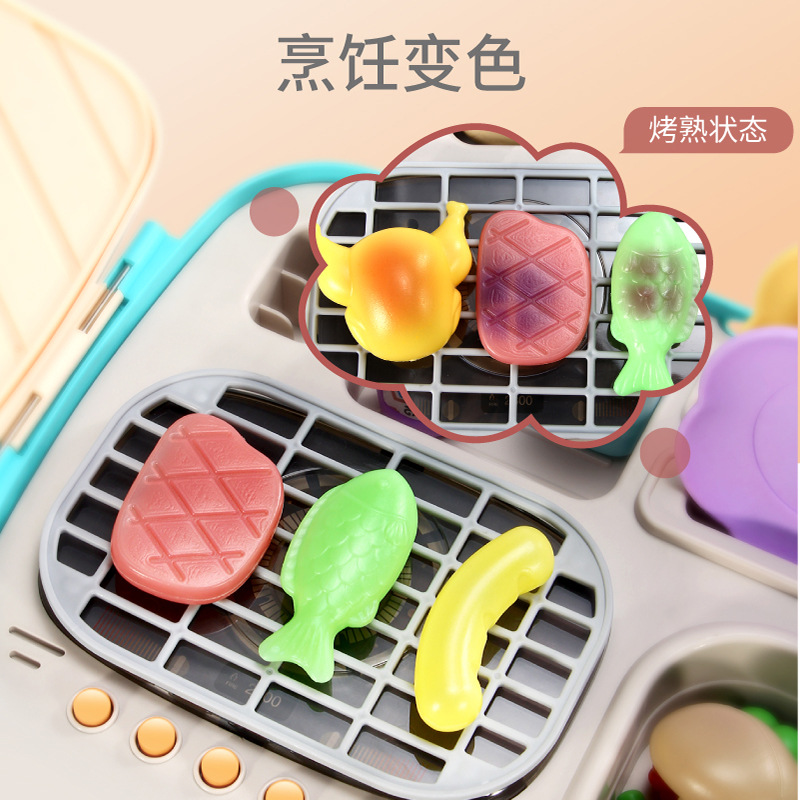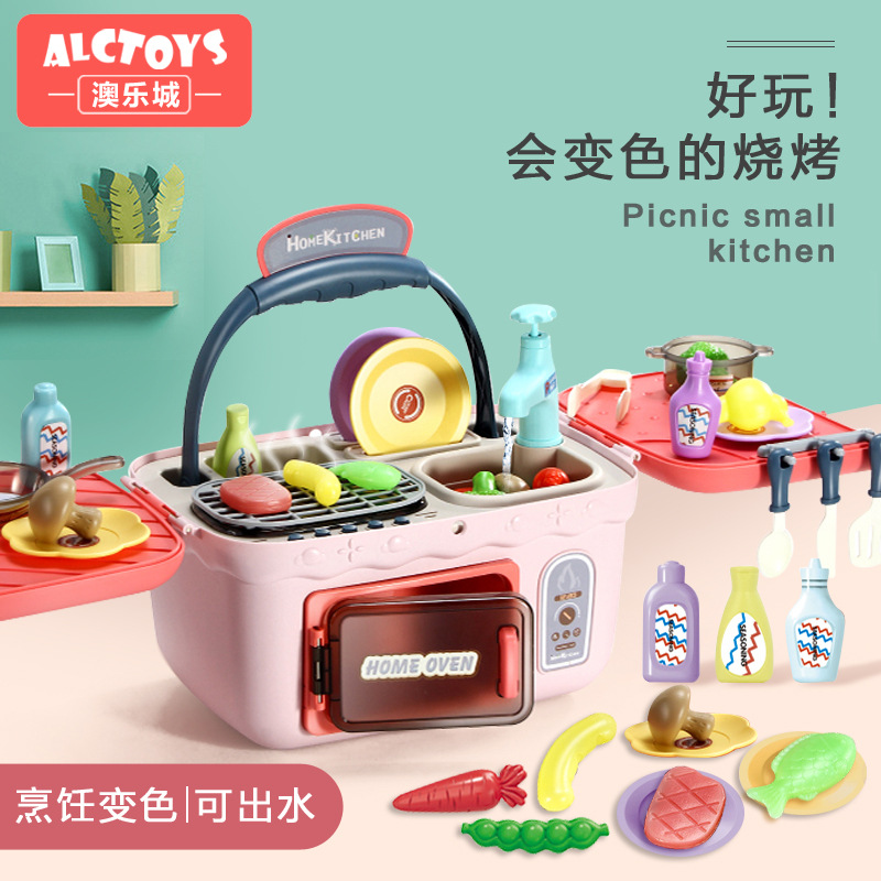 Children's play house kitchen toy set can emit water simulation barbecue color changing kitchen utensils oven boys and girls toys