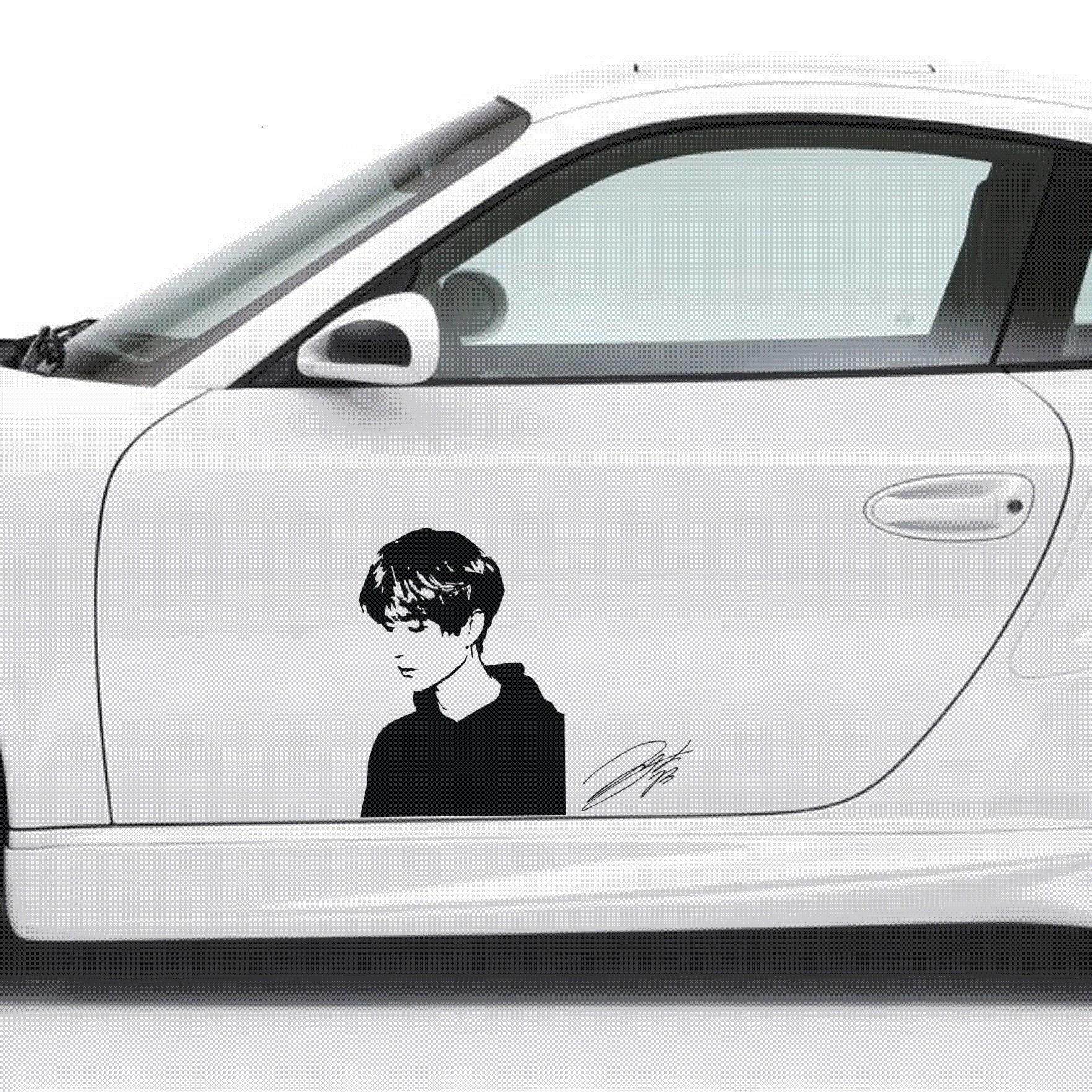 Bojun one shaw car sticker Showar Wang Yibo signed avatar car door oil box cover creative car decoration sticker