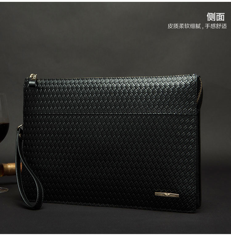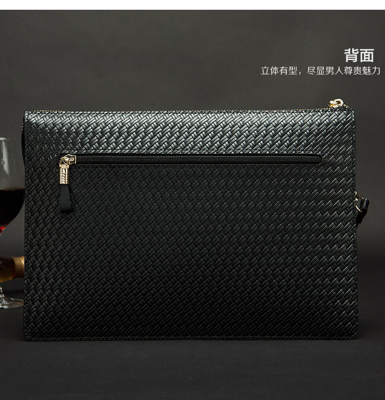 Jo Van Yamani Men's Handbags Genuine Leather Weave Textured Envelopes Bags Large Capacity Documents Sourcer Hands Bag Men