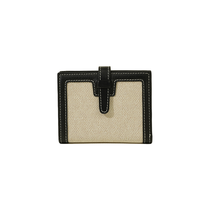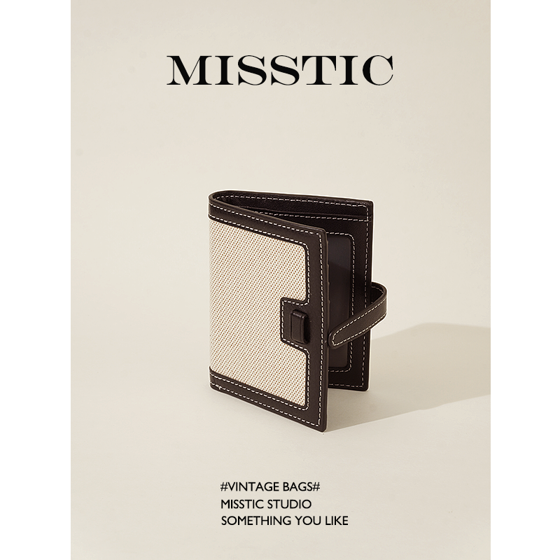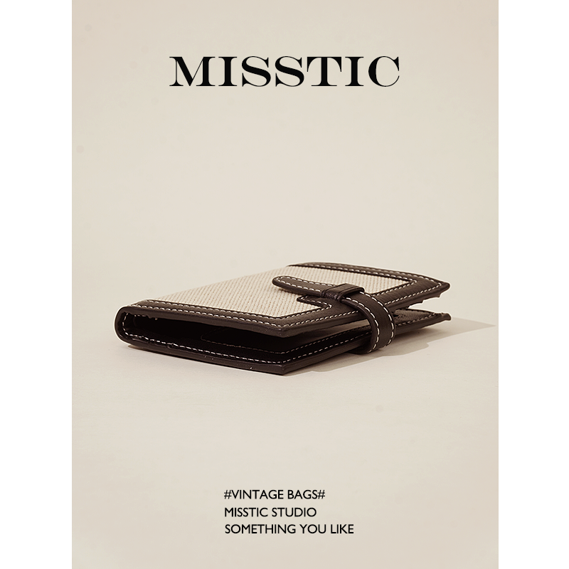(MT) Retro short clip first layer cowhide and canvas contrast color simple multi-card space simple coin purse new