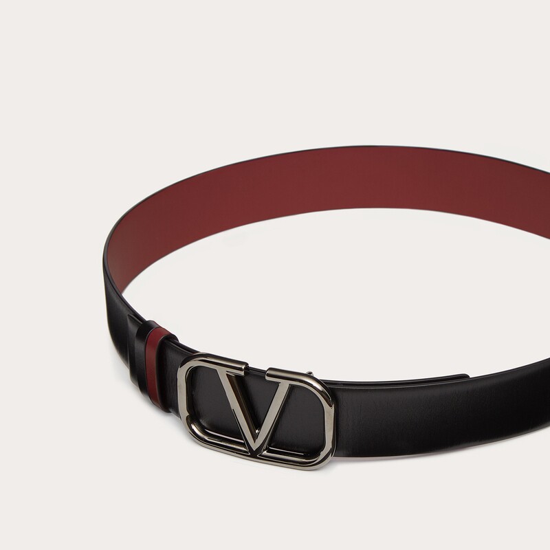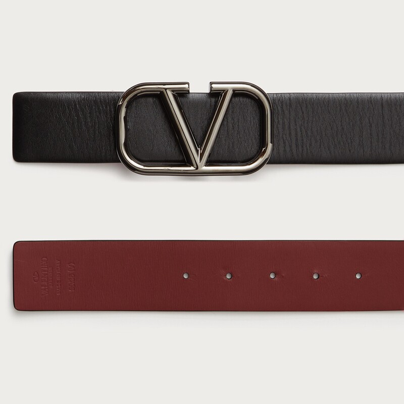 VALENTINO VAN RENTINO MEN VLOGO SIGNATURE Double sided calf leather waist belt