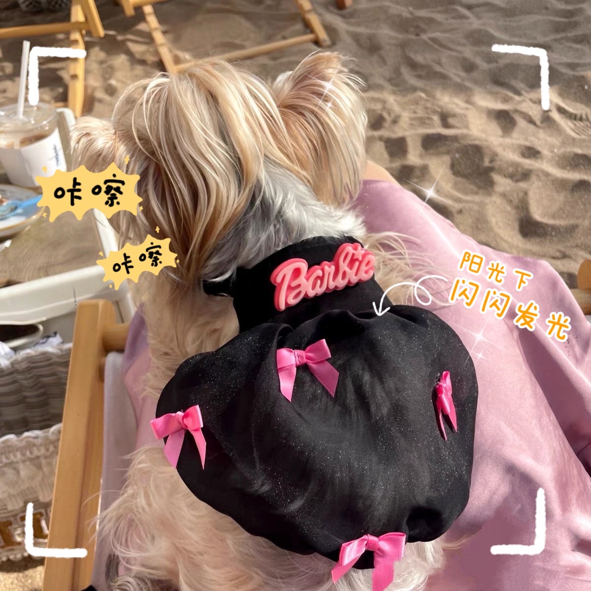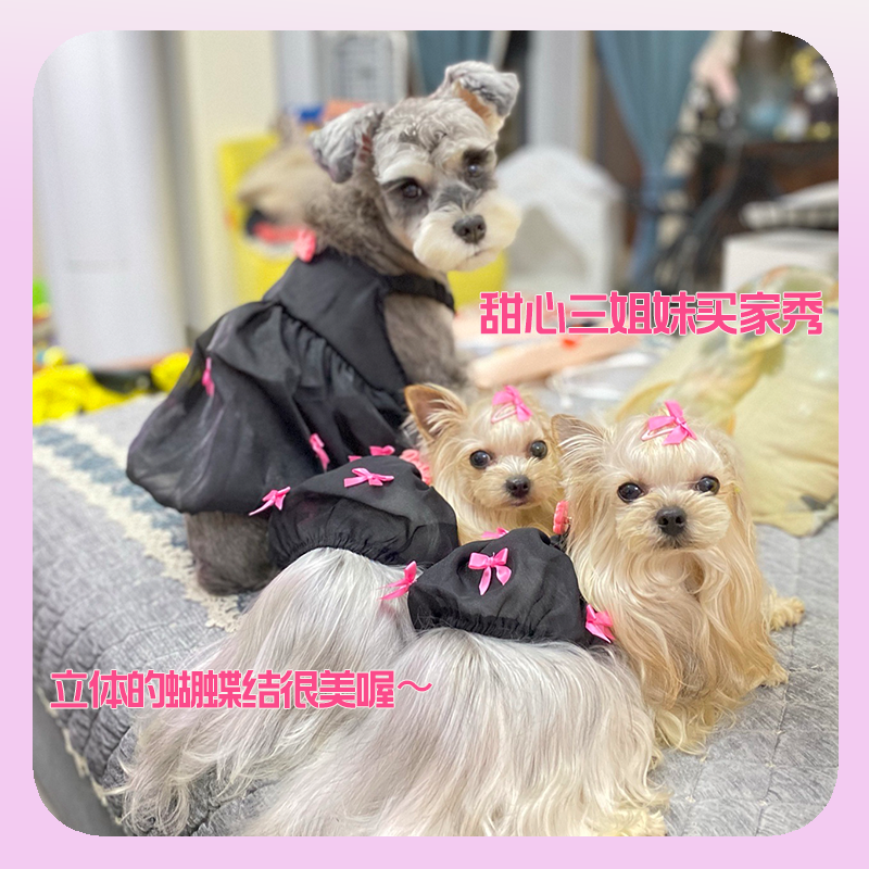 (laughs and laughs) Inwind Han version Pet Pet Clothing Sweet black Barbie Pink Bow Princess Princess Nepotism Short