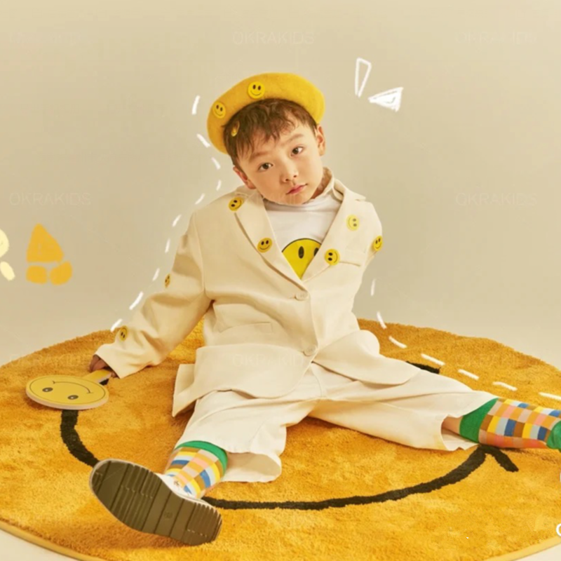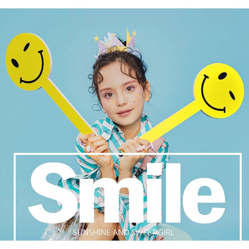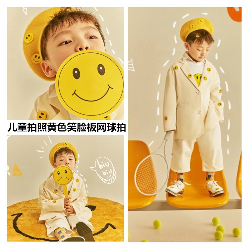 Children's creative photo yellow smiley hand holding board card baby theme photo blanket white tennis racket props
