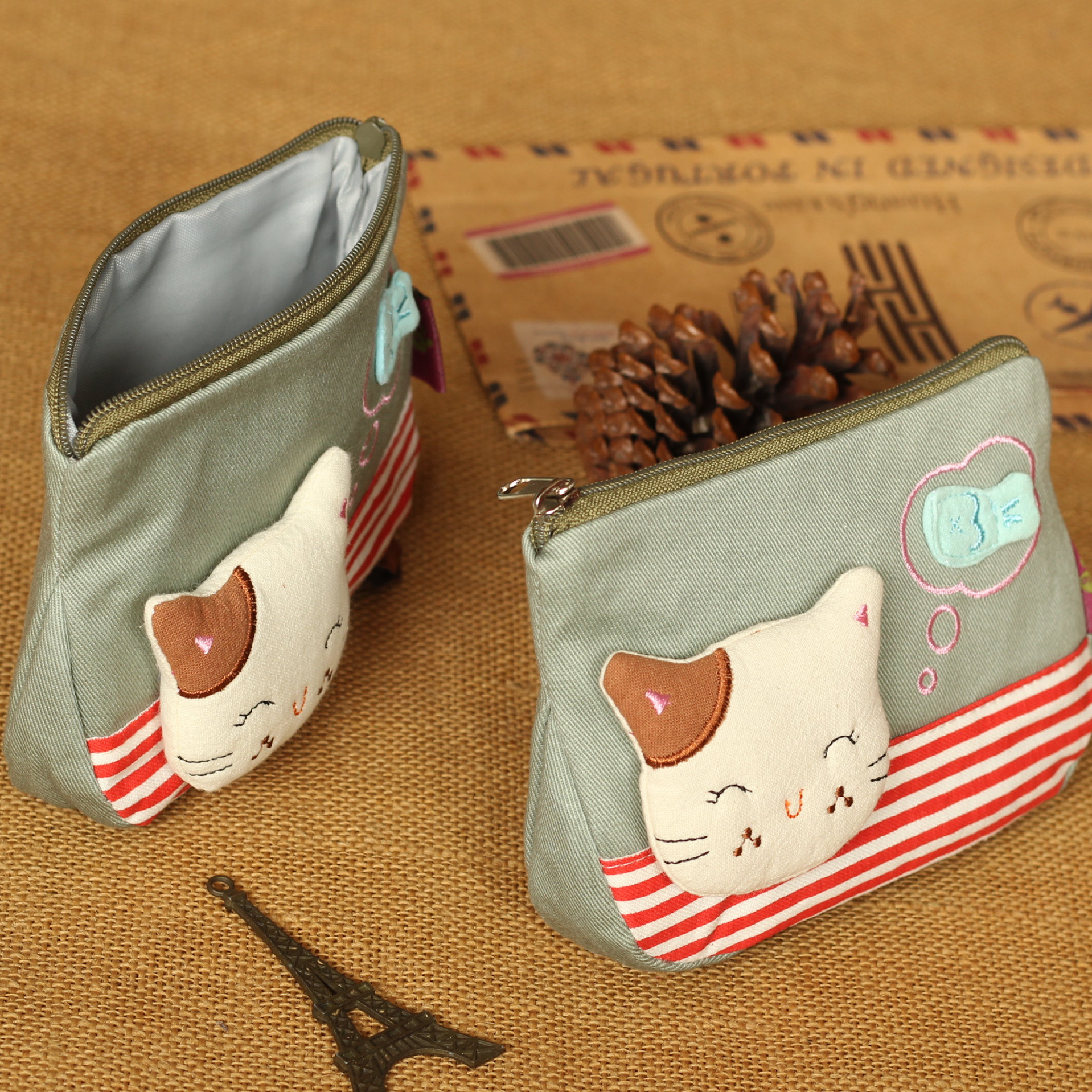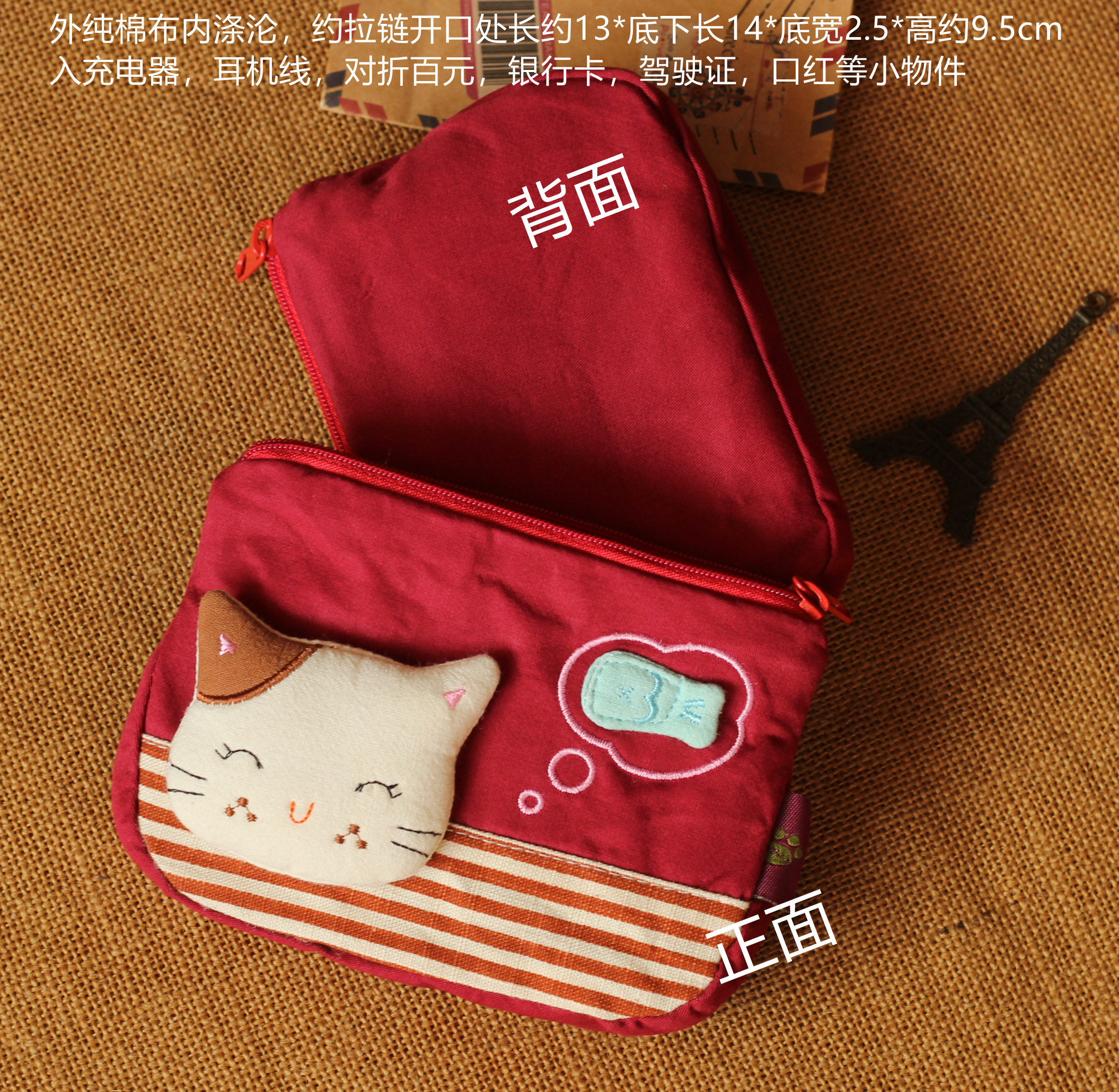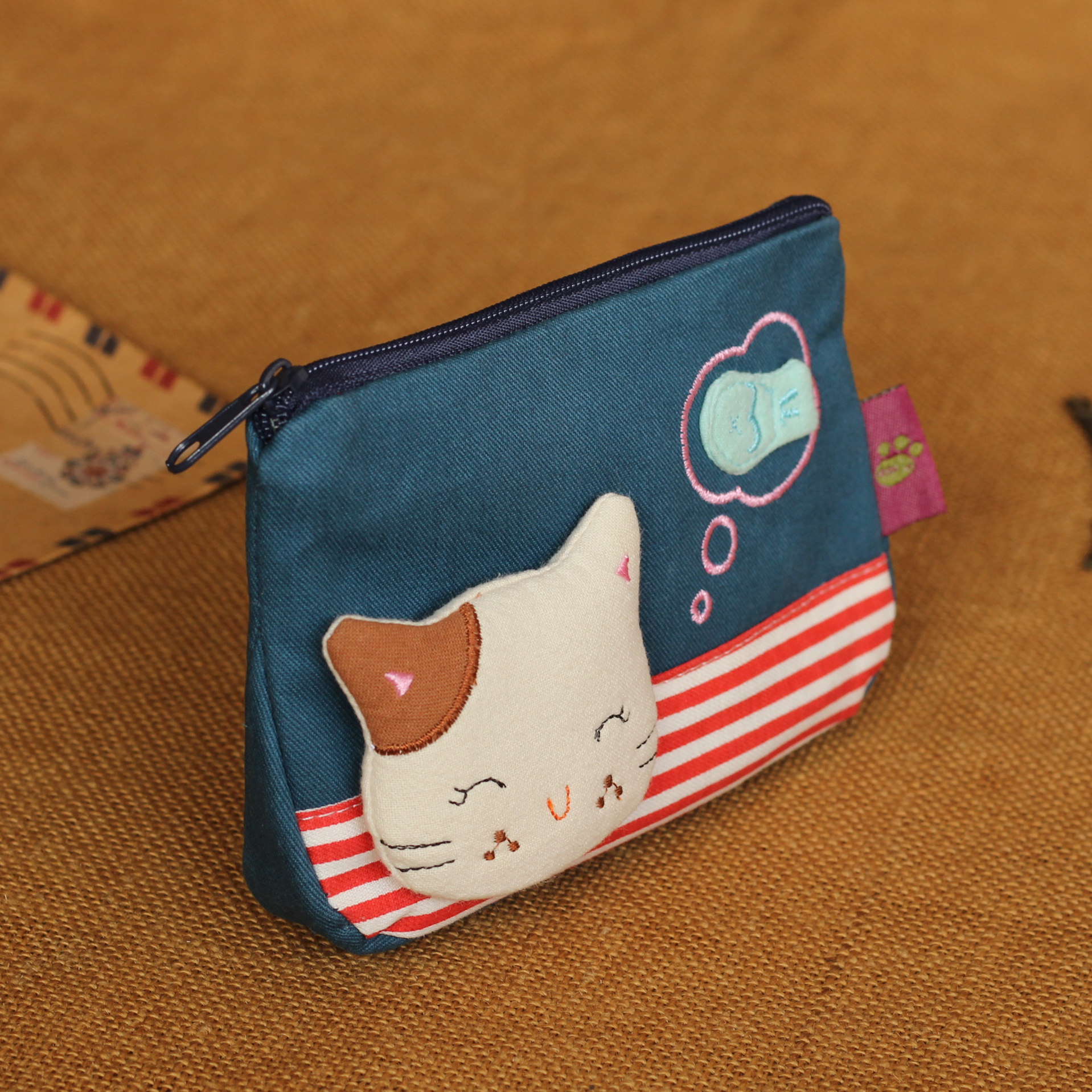 Mini small containing cloth bag for cute cat-Japanese-style monolayer small zero wallet with driver's license bank card charger