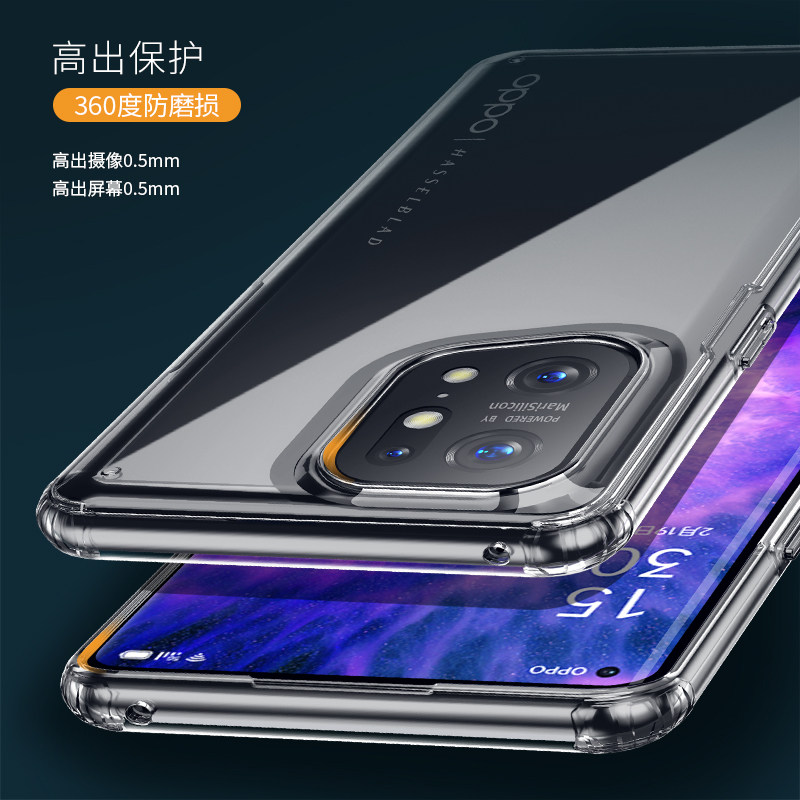 Scarlet guard suitable for OPPOFindX5Pro mobile phone protection shell transparent full package finx5 protection shell crystal overdraft new x5pro protective sleeve ultra-thin minimalist lens full package superior