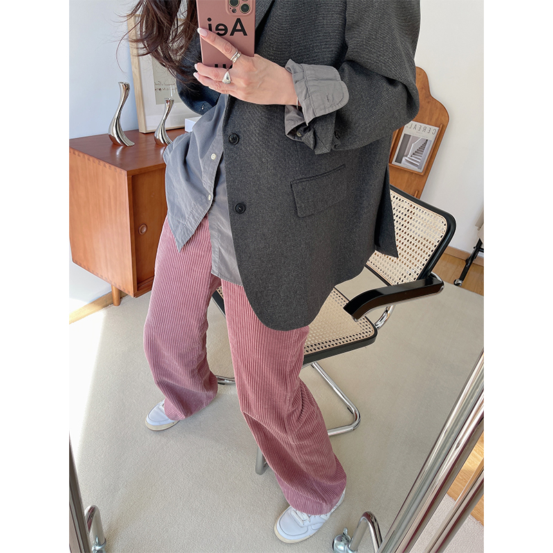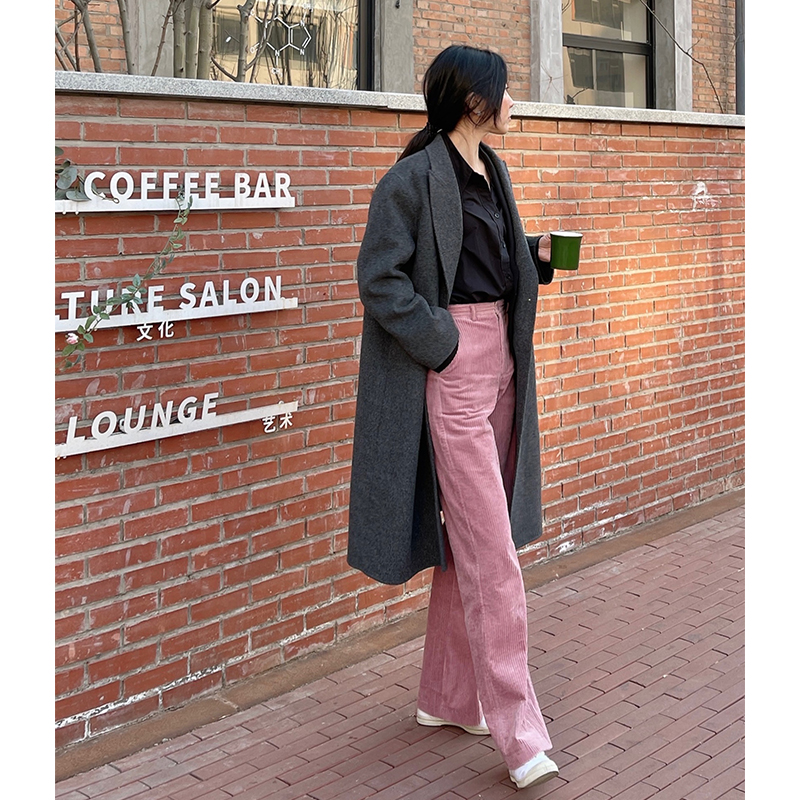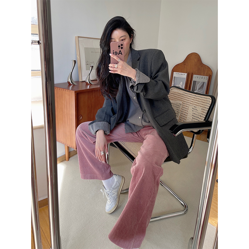 Crochet pink corduroy trousers women's 2022 spring new age-reducing soft waxy retro cotton profile corduroy trousers