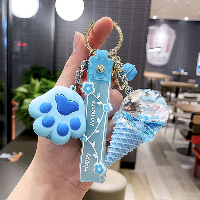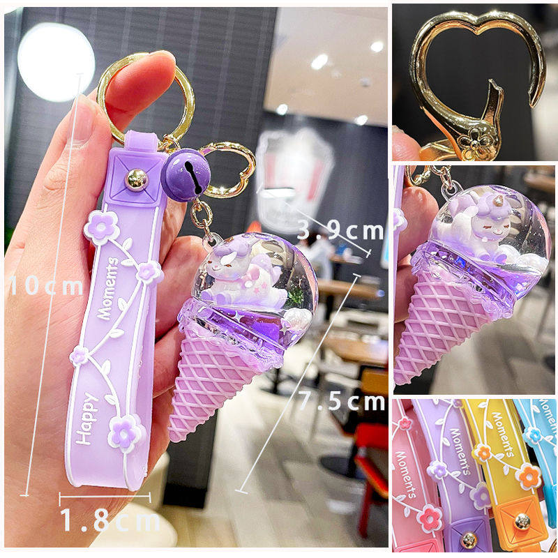 Cute Ice Cream Cone Keychain Pendant Girls Gift Quicksand Sequins Unicorn Key Chain School Bag Ornament