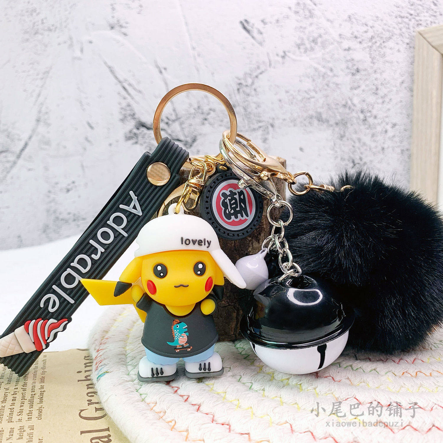 Ins creative Pikachu key chain couple girlfriends birthday gift gift box bell fur ball cute net red pendant