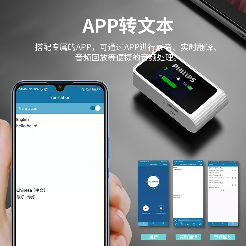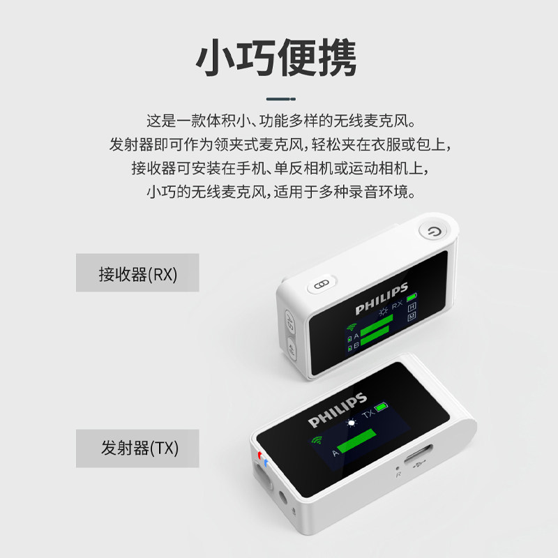 Philips VTR7700 Wireless Microphone Collar Clip Style Outdoor Short Film Professional Live Small Bee Shake Sound VLOG Special Noise Reduction Mobile Phone Camera Radio Recording Device Full Set