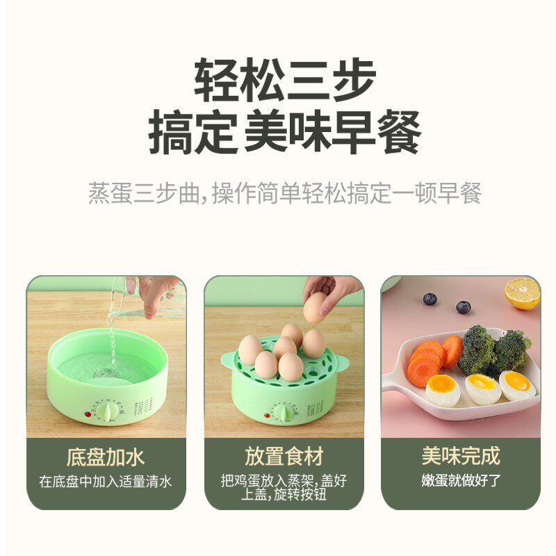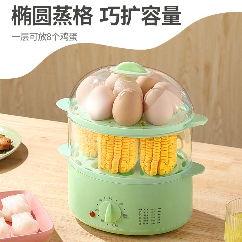 Timed boiled egg machine double layer 1 person multifunction Home Steamed Egg machine Small breakfast machine Automatic power cut steam egg deity