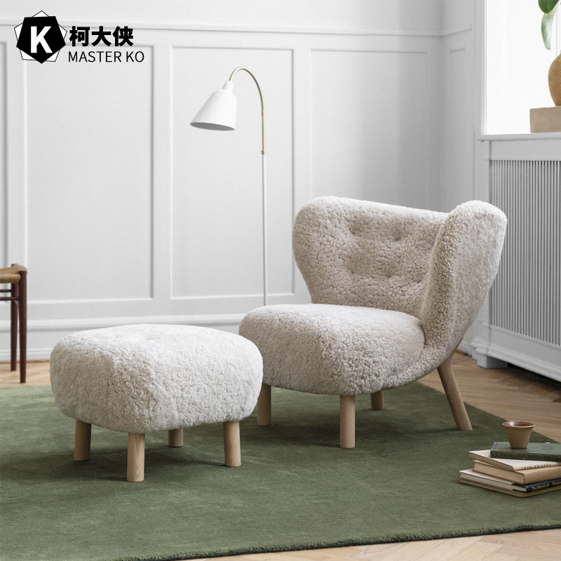 Nordic Fashion Brief Solid Wood Lamb Wool Backrest Sloth Sofa Home Living-room Bedroom Balcony Casual Chair Customised