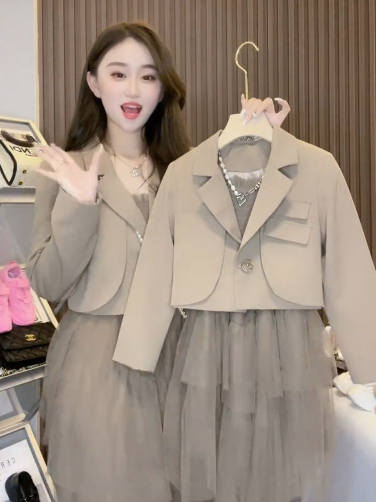 South Korean Spring and Autumn Fried Street Fashion Foreign Dress Small Suit Suit High-end Foreign Pie Mother Daughter Dress 2022 New Wave