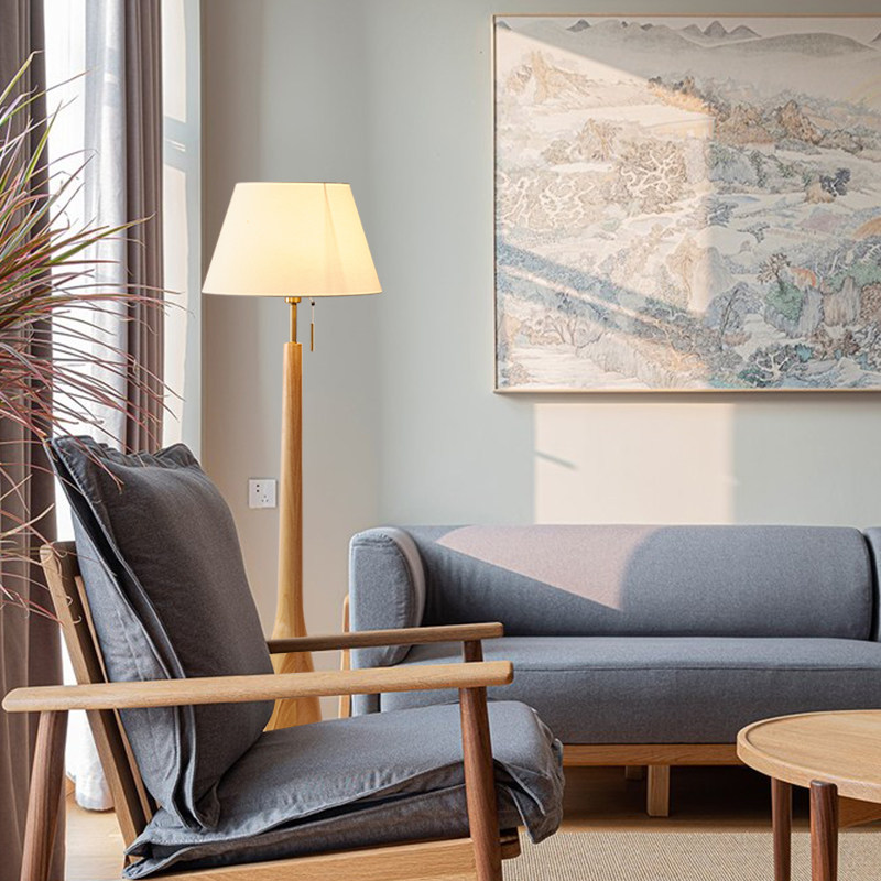 Floor lamp living room bedroom retro Chinese Japanese wabi-sabi designer Nordic ins solid wood bedside table lamp