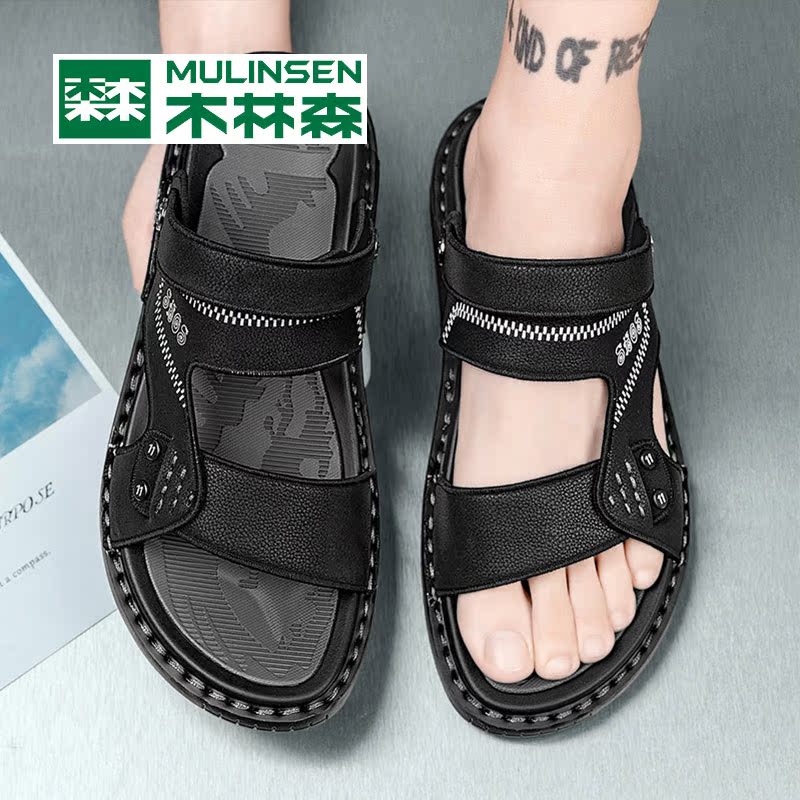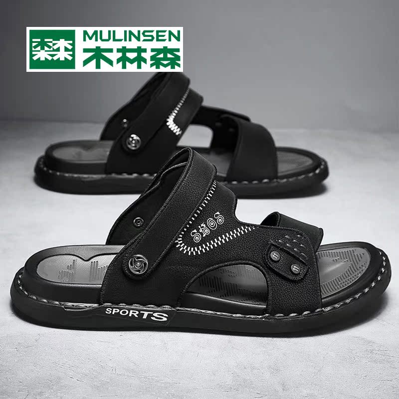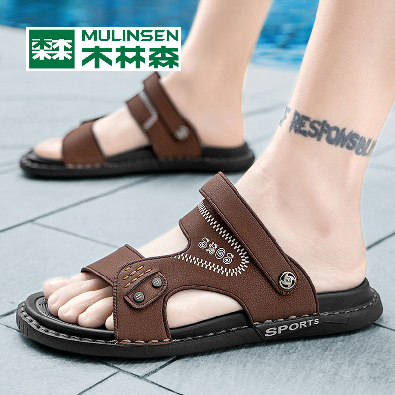 Wood Linson Sandals Sandals Men's Slippers Summer 2022 New Driving Beach Shoes Male Non-slip Soft Bottom Dual-use Leather Sandals