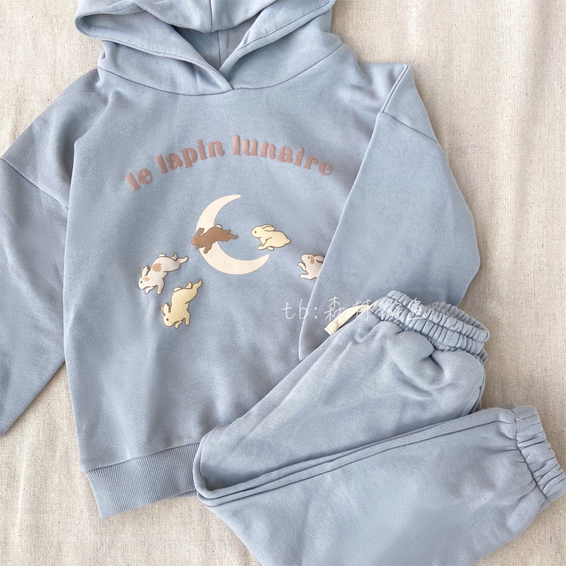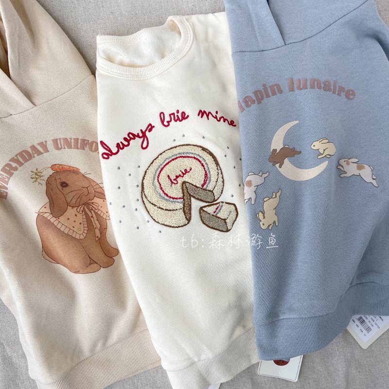 Blue rabbit hooded sweater apricot rabbit hooded sweater embroidery cake round neck sweater blue rabbit sweater pants apricot rabbit sweater embroidery cake sweater blue rabbit sweater suit apricot rabbit sweater suit embroidery
