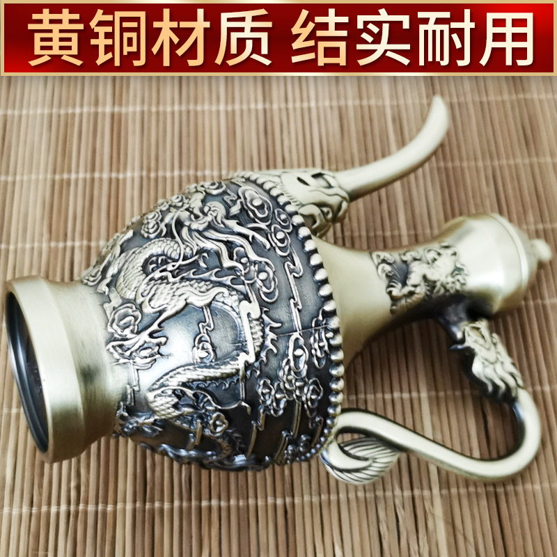 Bronze dragon pot cup suit home living room decoration fitting items for two or two small bottles of wine