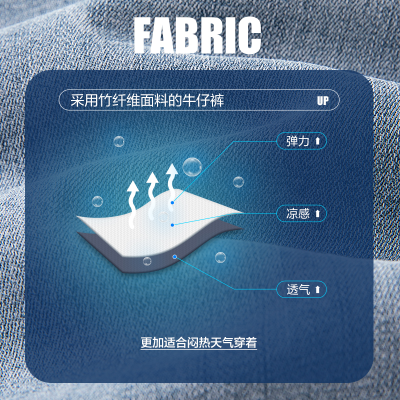 (cool feeling bamboo fiber) lacquered men's jeans spring and summer style boys' elastic straight drum pants hit color long pants
