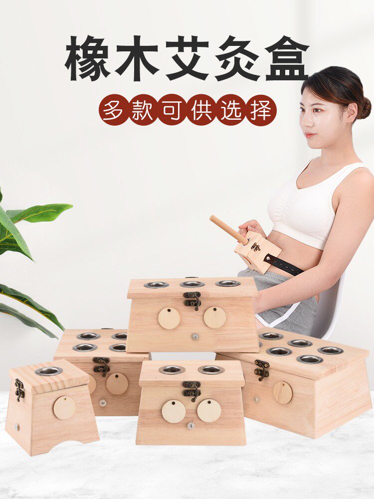 The new snap magnet model 1-6 hole solid wood moxibustion box temperature-controlled moxa bar moxibustion utensils