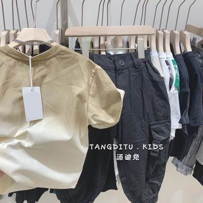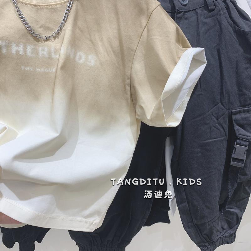 Tang Ditu boys long-sleeved T-shirt 2022 new children's gradient solid color short-sleeved bottoming shirt girls half-sleeved top 2