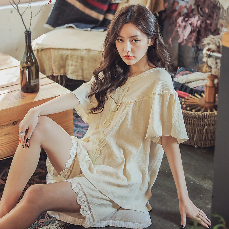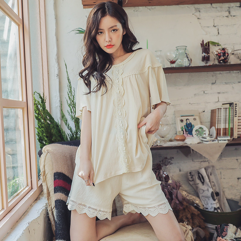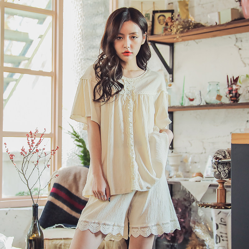 Family Maz Princess Wind Pyjamas Woman Summer Pure Cotton Short Sleeve Shorts Slim all cotton Summer New home Suits Suit