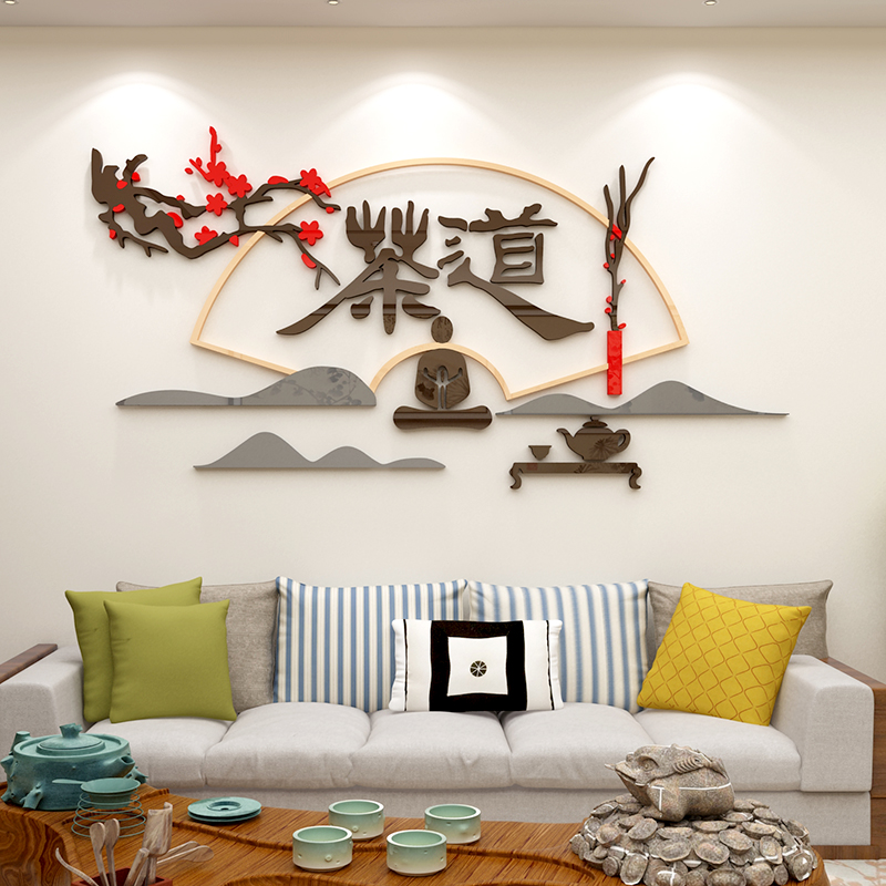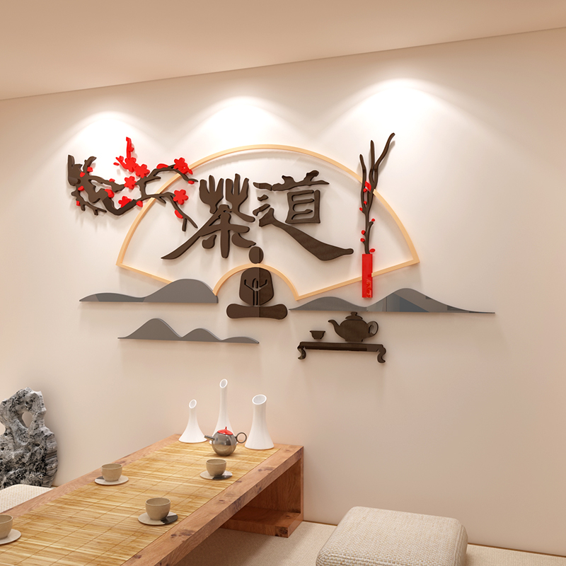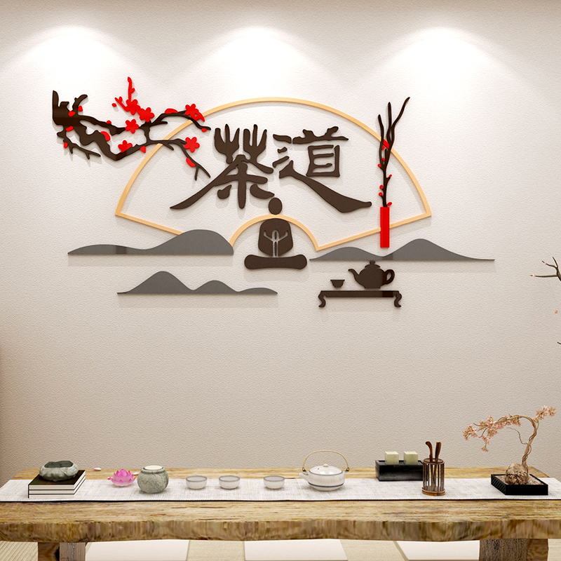 Tea Room Background Wall Face Wall Decoration Zen Stickler Character Painting Tea House Shop House Arrangement 3d Solid Waterproof Self-Adhesive