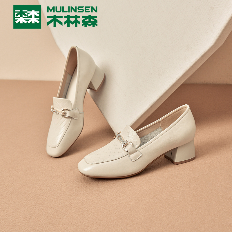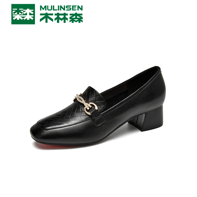 Wooden Single Shoes Wolf Single Shoes in the shallow mouth of the heel of the heel, the English wind leather temperament small leather shoes