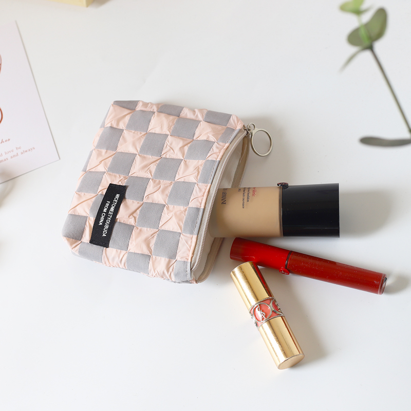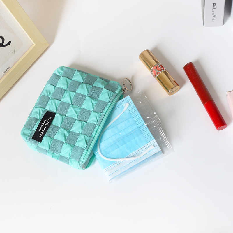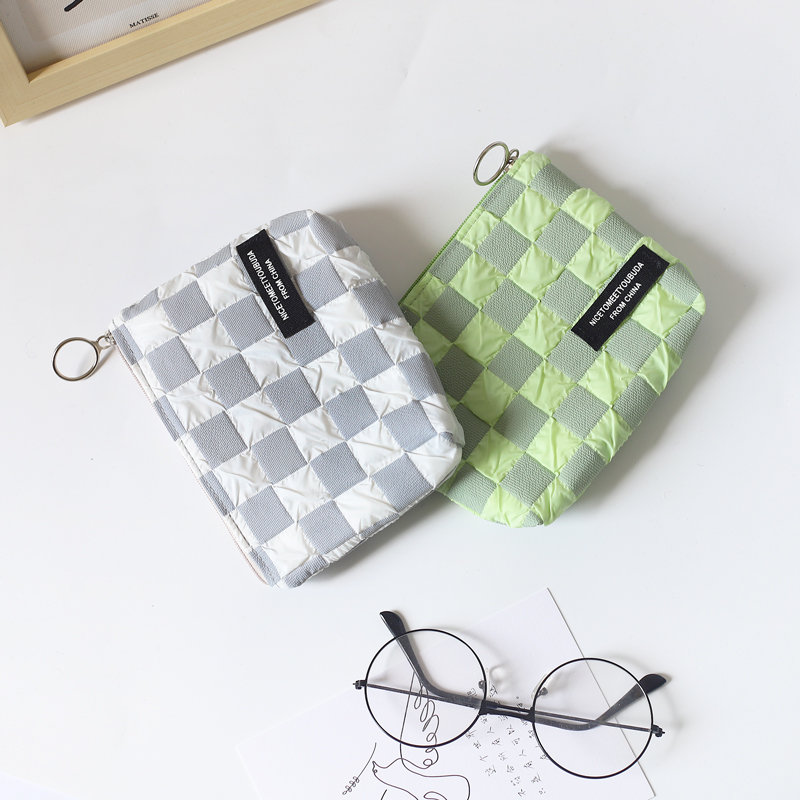 Ins design sense contrasting color grid coin purse cute mini portable student coin earphone storage small bag
